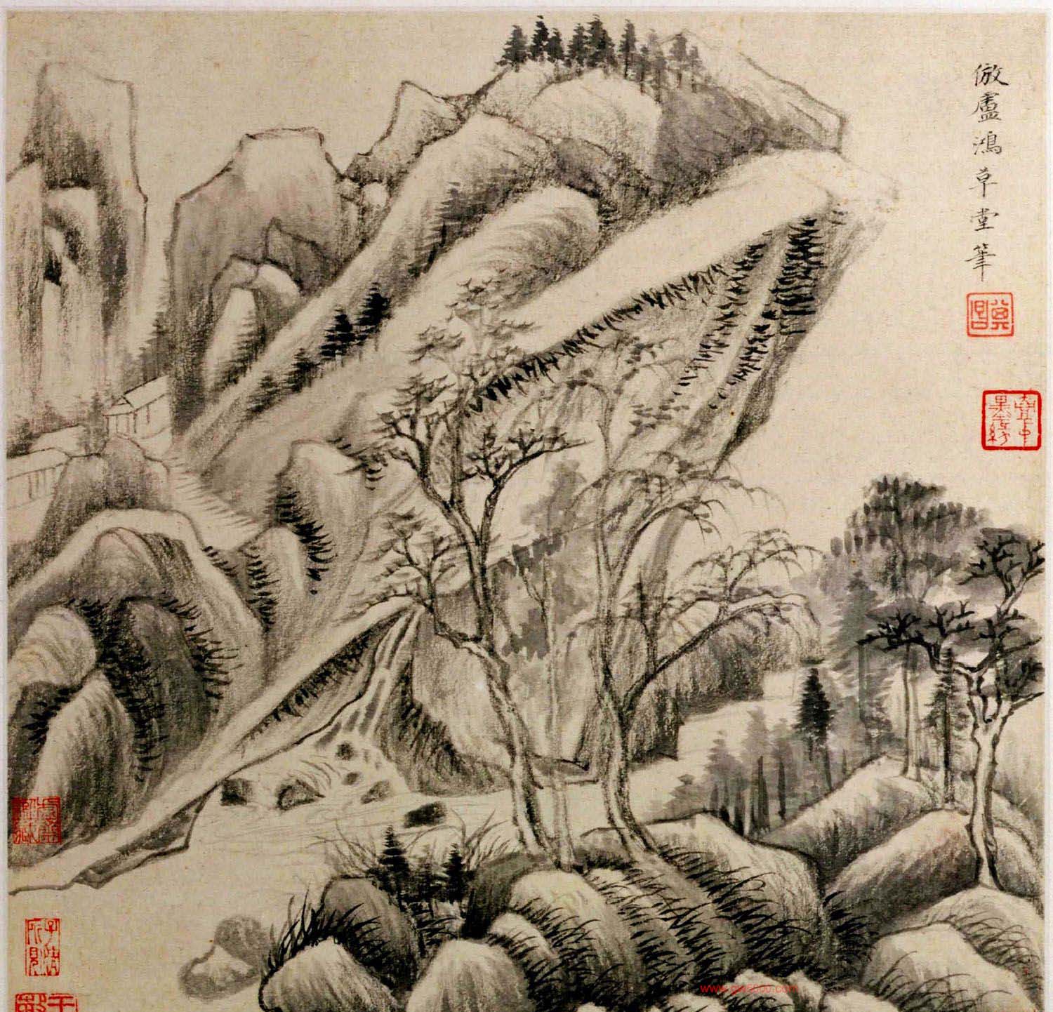 第二帧,右上题:“仿卢鸿草堂笔。”