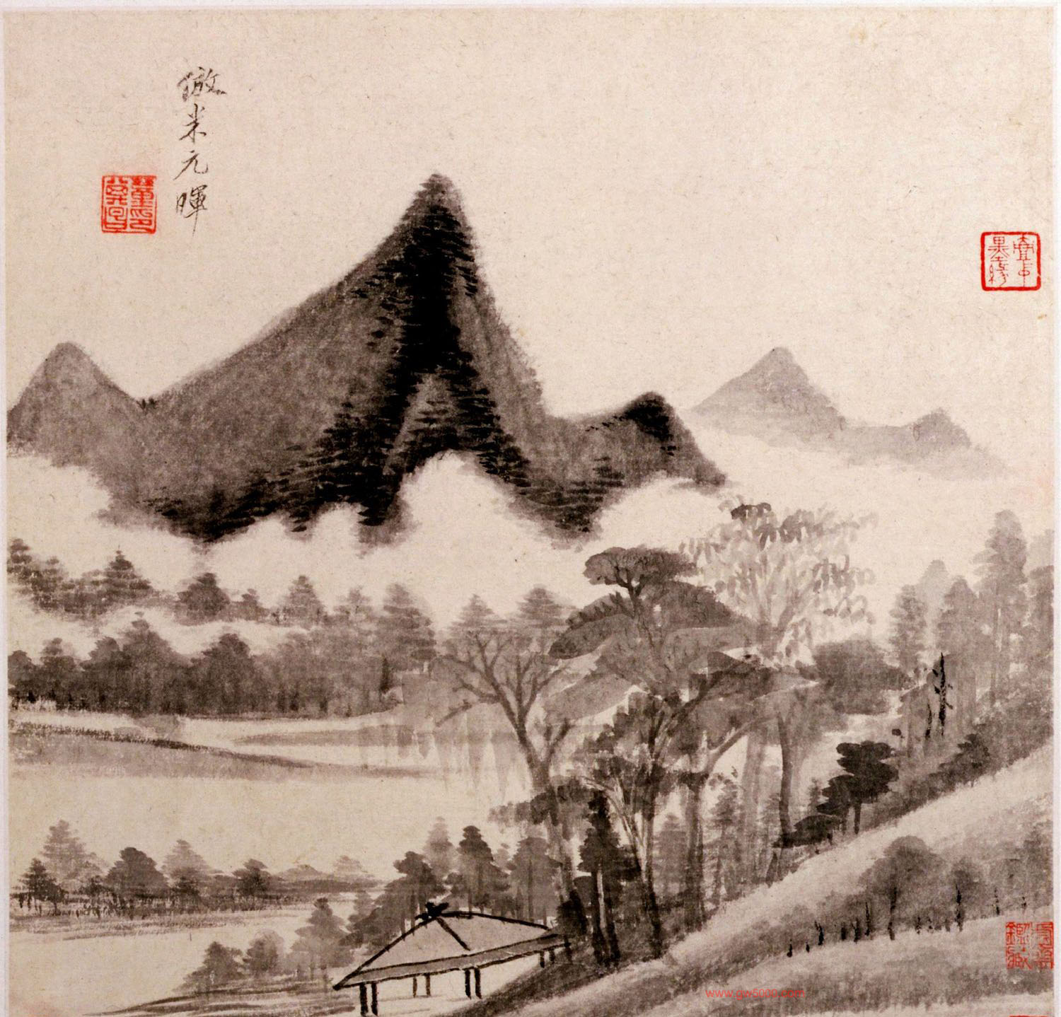 董其昌题:“潇洒营丘水墨仙,浮空出没有无间。尔来一变风流尽,谁见将军设色山。