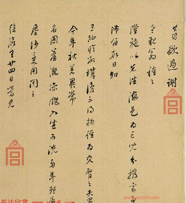 明董其昌五通信札谈书画鉴赏与收藏,《行书札》卷,故宫博物院藏。