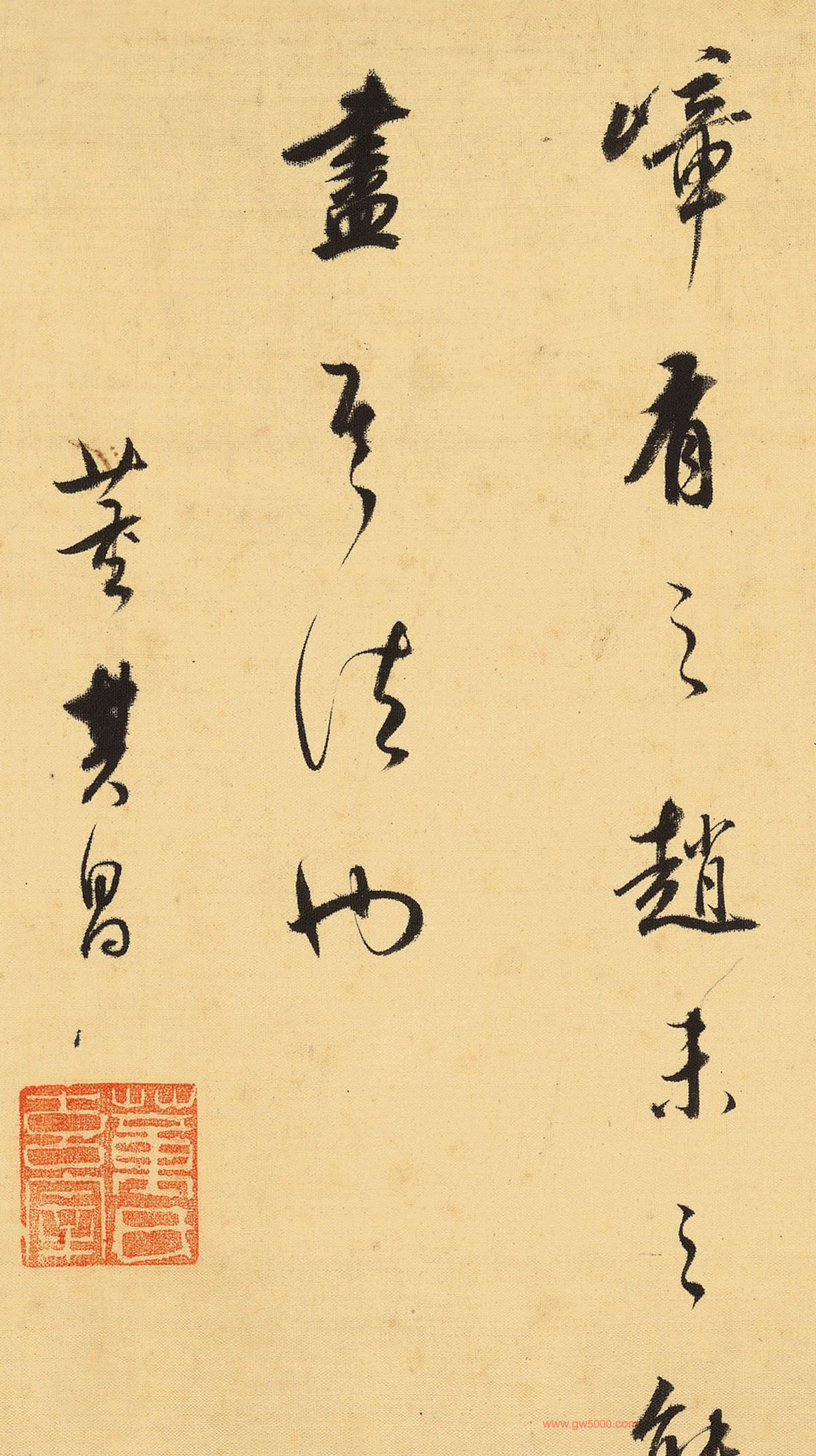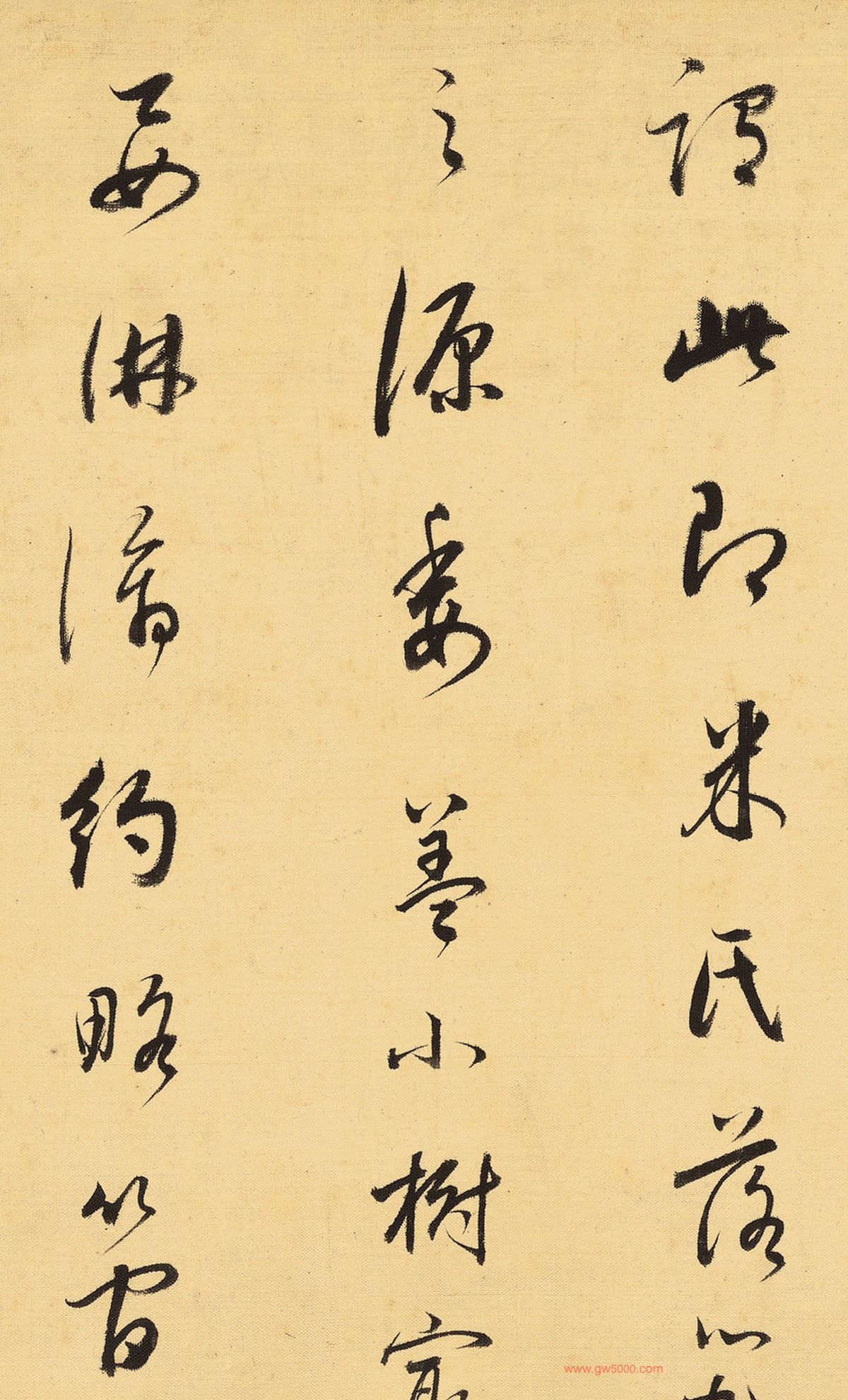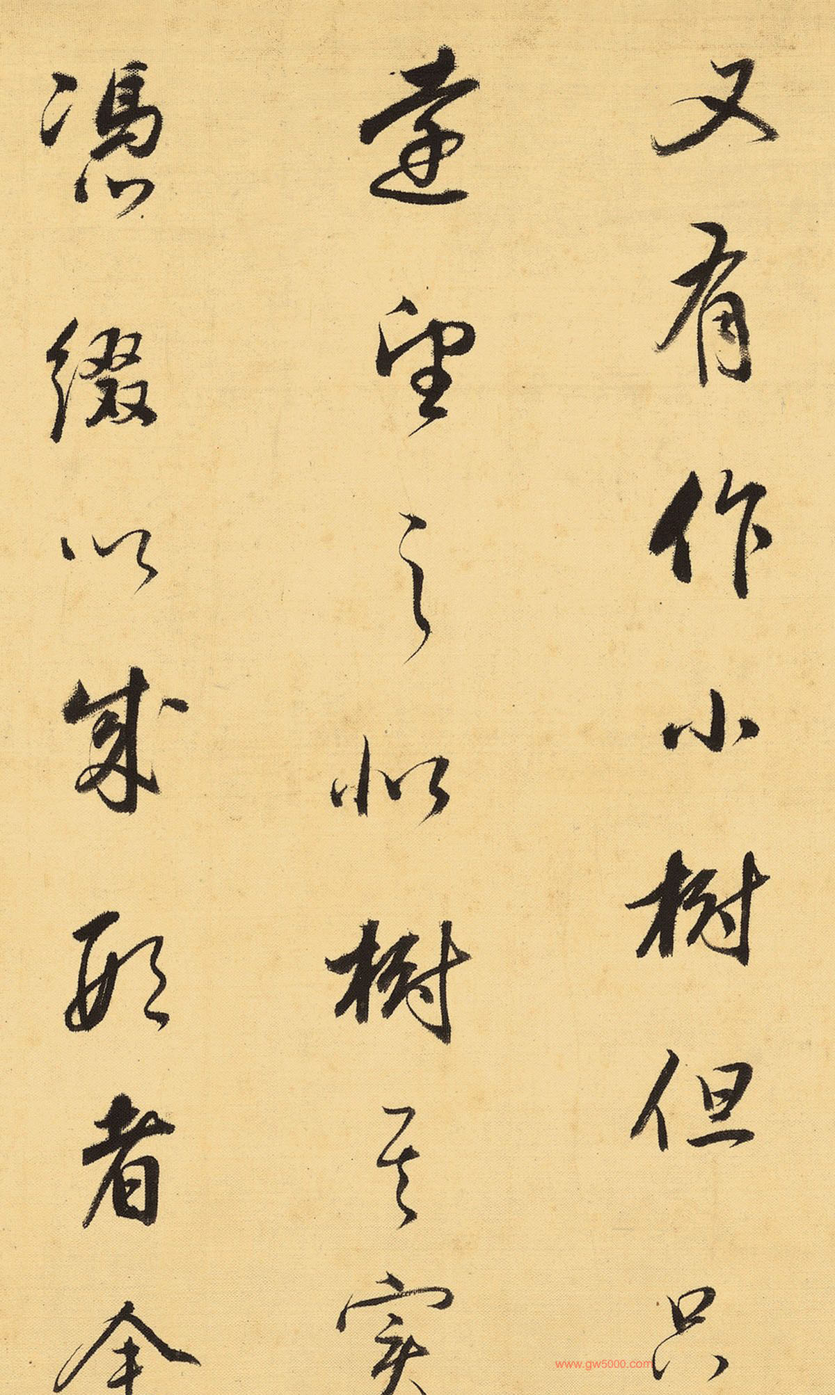 董北苑画树,多有不作小树者,如秋山行旅是也。又有作小树,但只远望之似树,其实凭点缀以成形者。余谓此即米氏落茄之源委。盖小树最要淋漓约略,简于枝柯而繁于形影,欲如文君之眉,与黛色相参合,则是高手。
