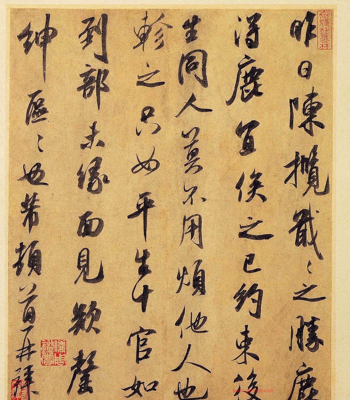 1.此帖与《参政帖》之风格略同,用笔圆润,无剑拔弩张之势,大概是米芾晚期之作。