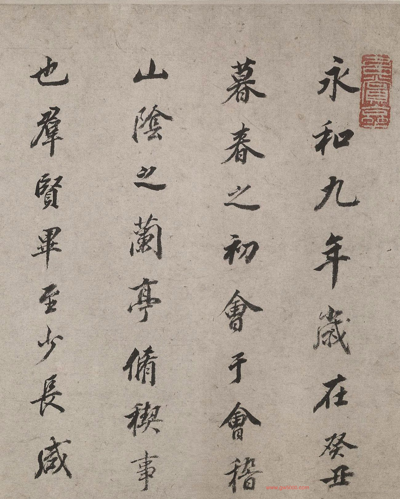 明代董其昌行书临兰亭序卷,纵24.7cm,横191cm。故宫博物院藏。