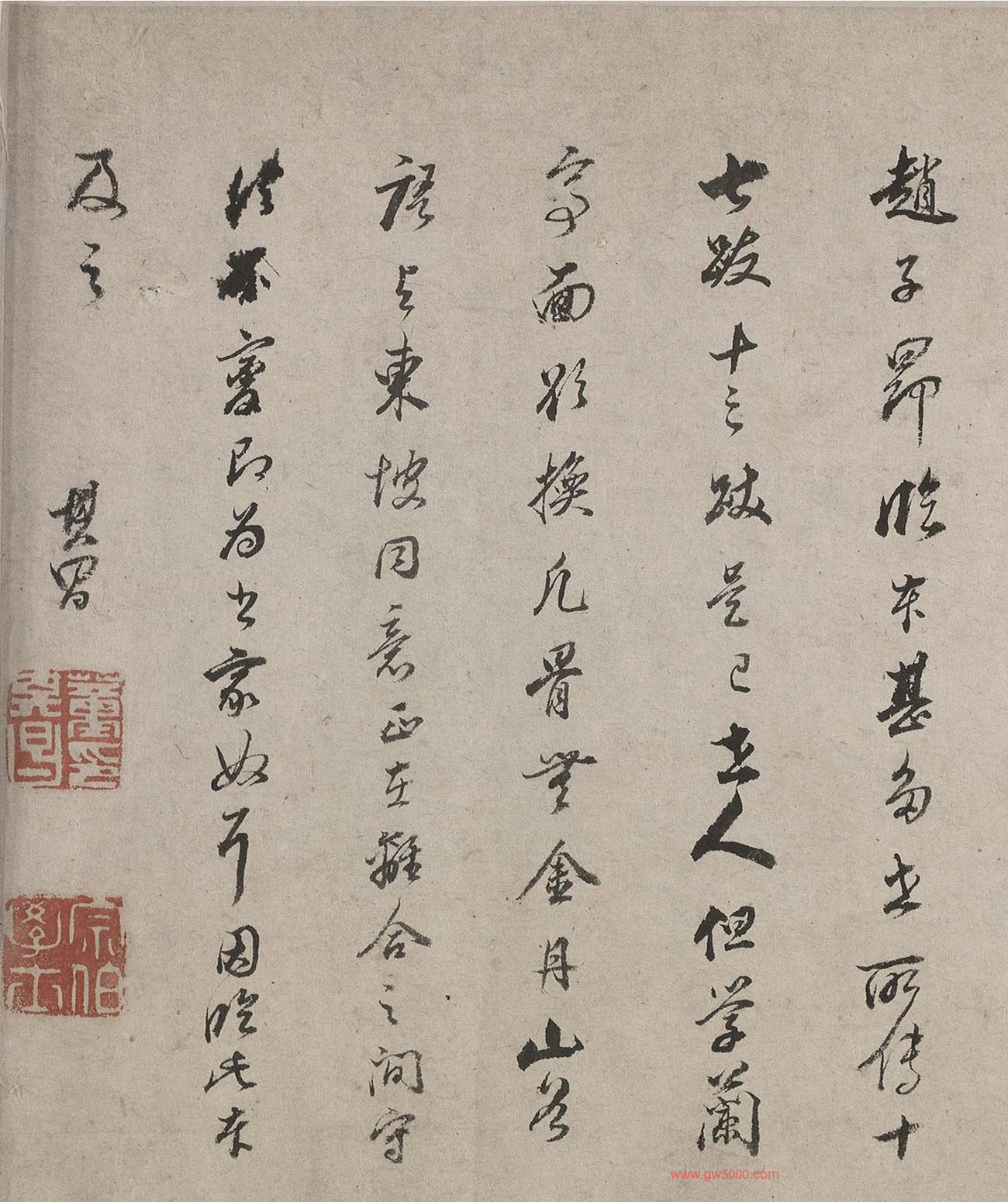 董其昌仕途通达,官至南京礼部尚书。到了清代,康熙又倍加推崇、偏爱,甚而亲临手摹董书,常列于座右,晨夕观赏。一时士子皆学董其昌的妍美、软媚,清初的书坛为董其昌笼罩,书风日下,实在是书坛的悲哀。对董其昌的批评者也很多,包世臣、康有为最为激烈。