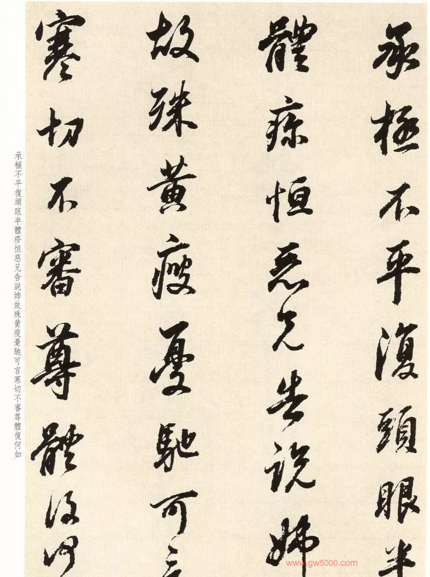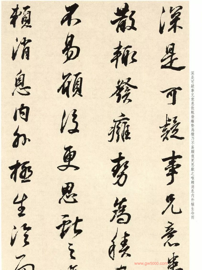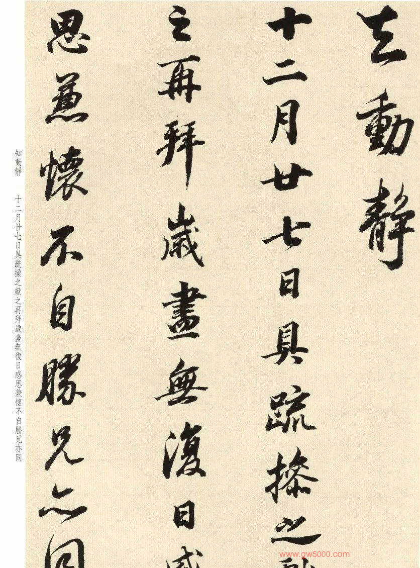 此书虽为临帖,但并不是僵硬地照本摹临,而是以己意为之,故仍体现自身的自然舒展,秀拙相生的书法特色。