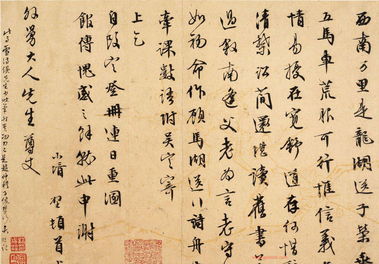 释文:西南万里是龙湖......小婿 璧顿首 上外舅大人先生尊丈