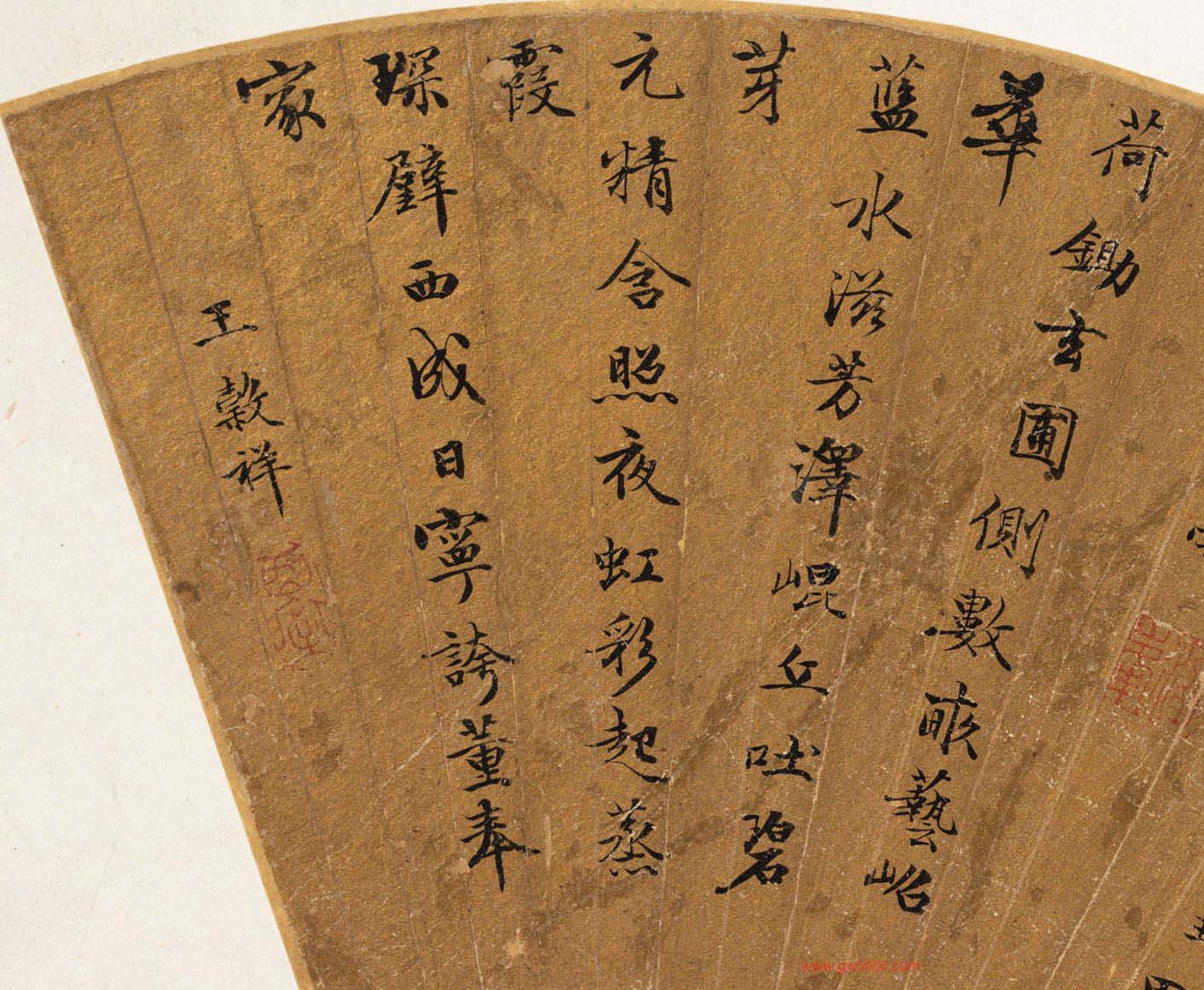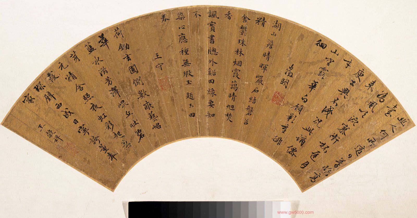 明代文徵明王穀祥王守三诗书法扇面,16.2 x 51.4 cm,美国纽约大都会博物馆藏。
