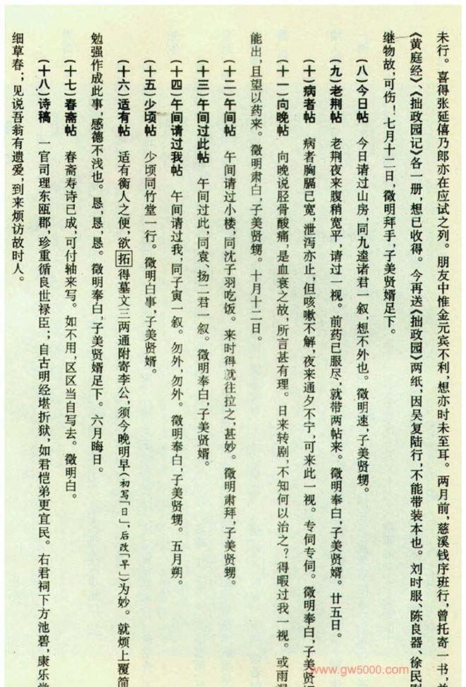 文徵明简札诗稿手迹欣赏《文衡山先生诗翰》,本册刊印衡山居士手迹十八种。