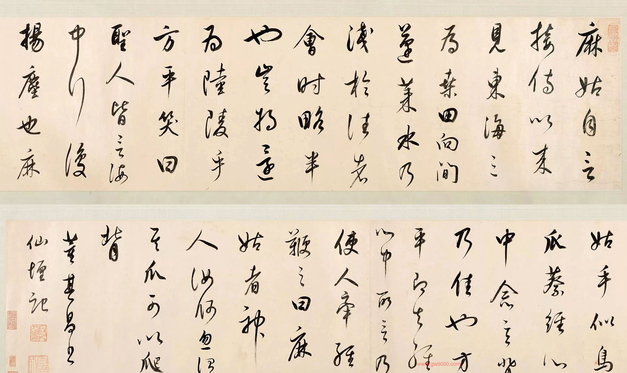 董其昌行草书法《仙坛记》卷,纵24.8厘米;横183.6厘米,上海博物馆藏。