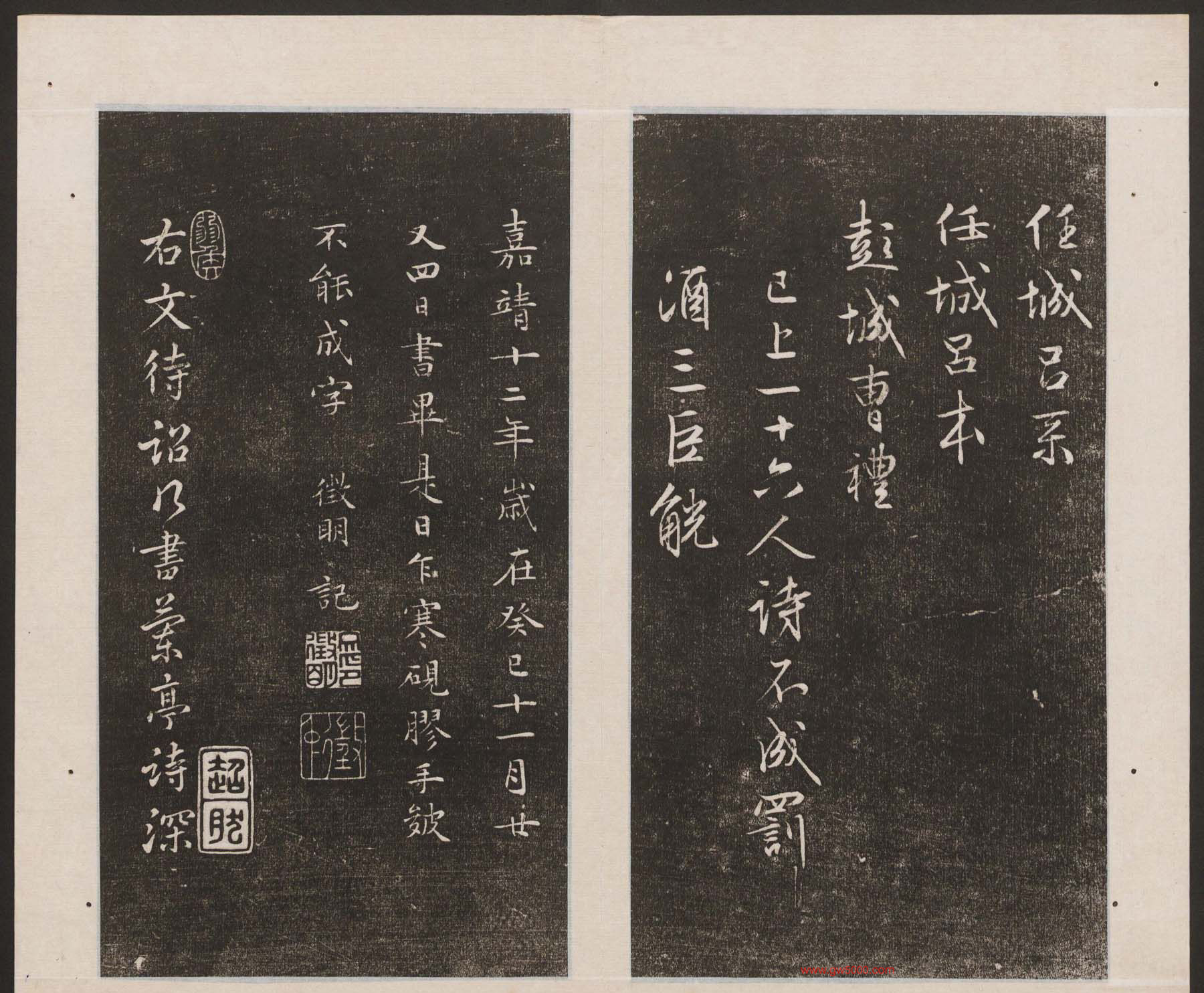 劉恕集劉園集帖. 嘉慶11年 [1806] . 經摺裝, 墨紙尺寸: 25.6 x 14 cm. 原刻清拓本