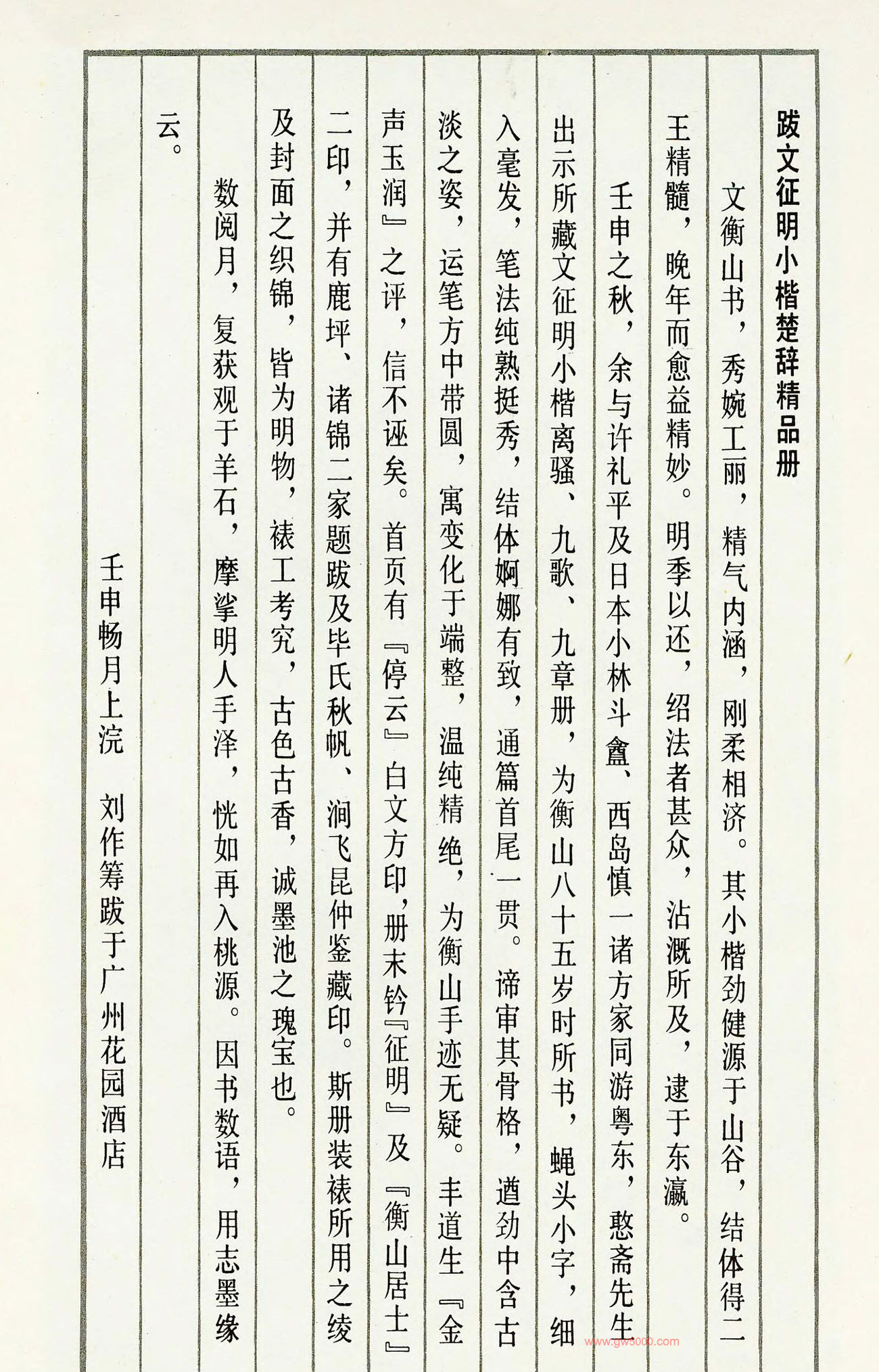 文待诏楷法《文徵明小楷楚辞精品册》,岭南美术出版社。