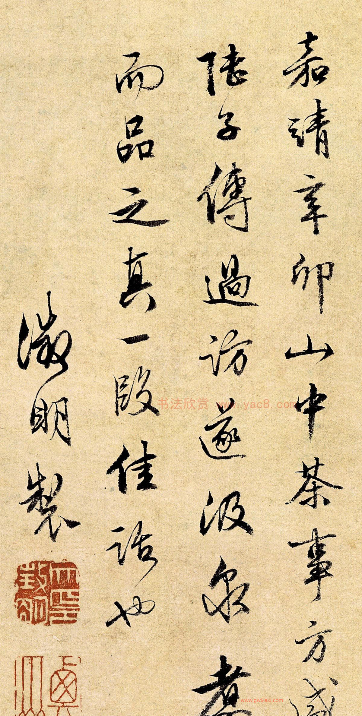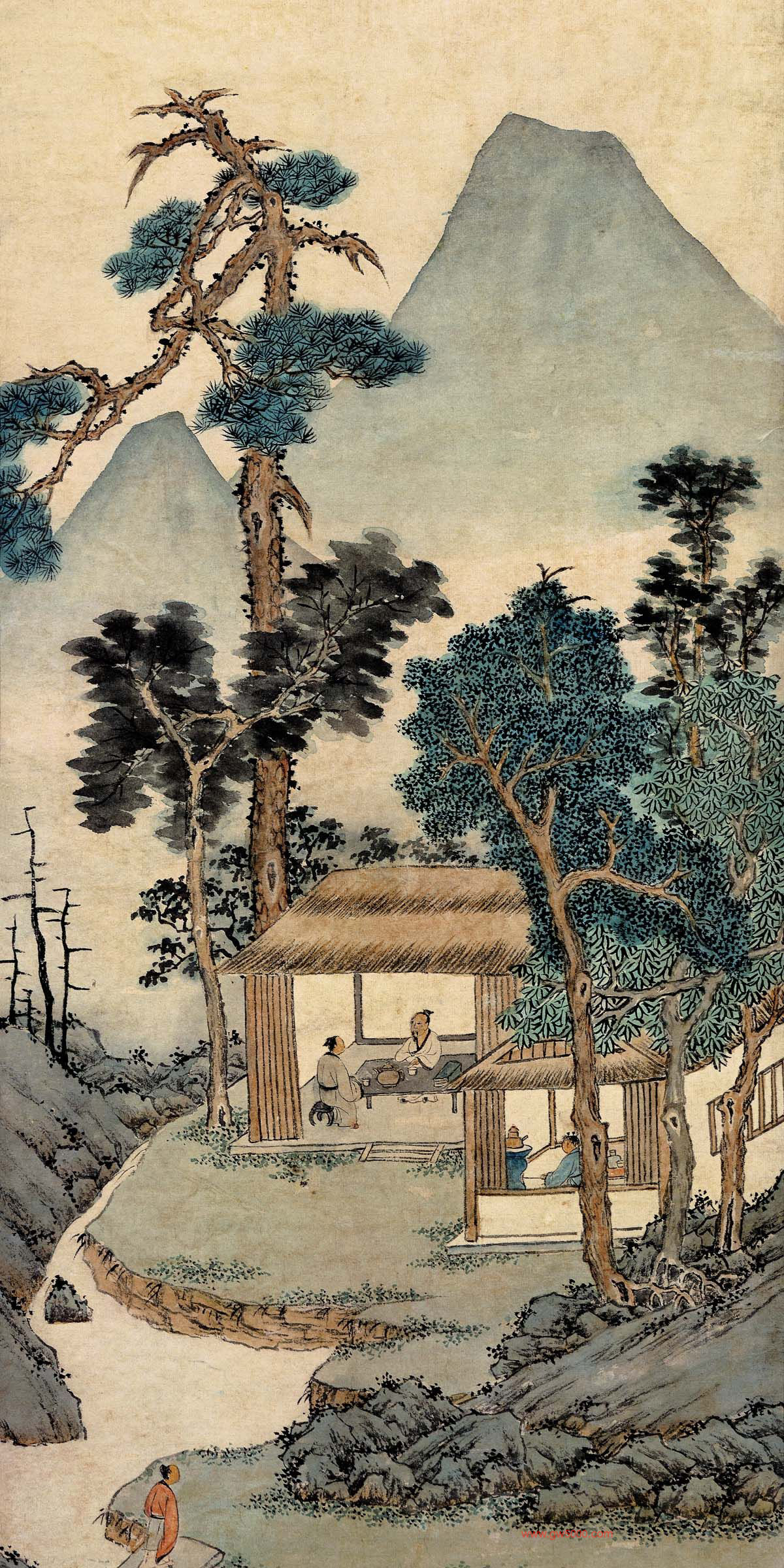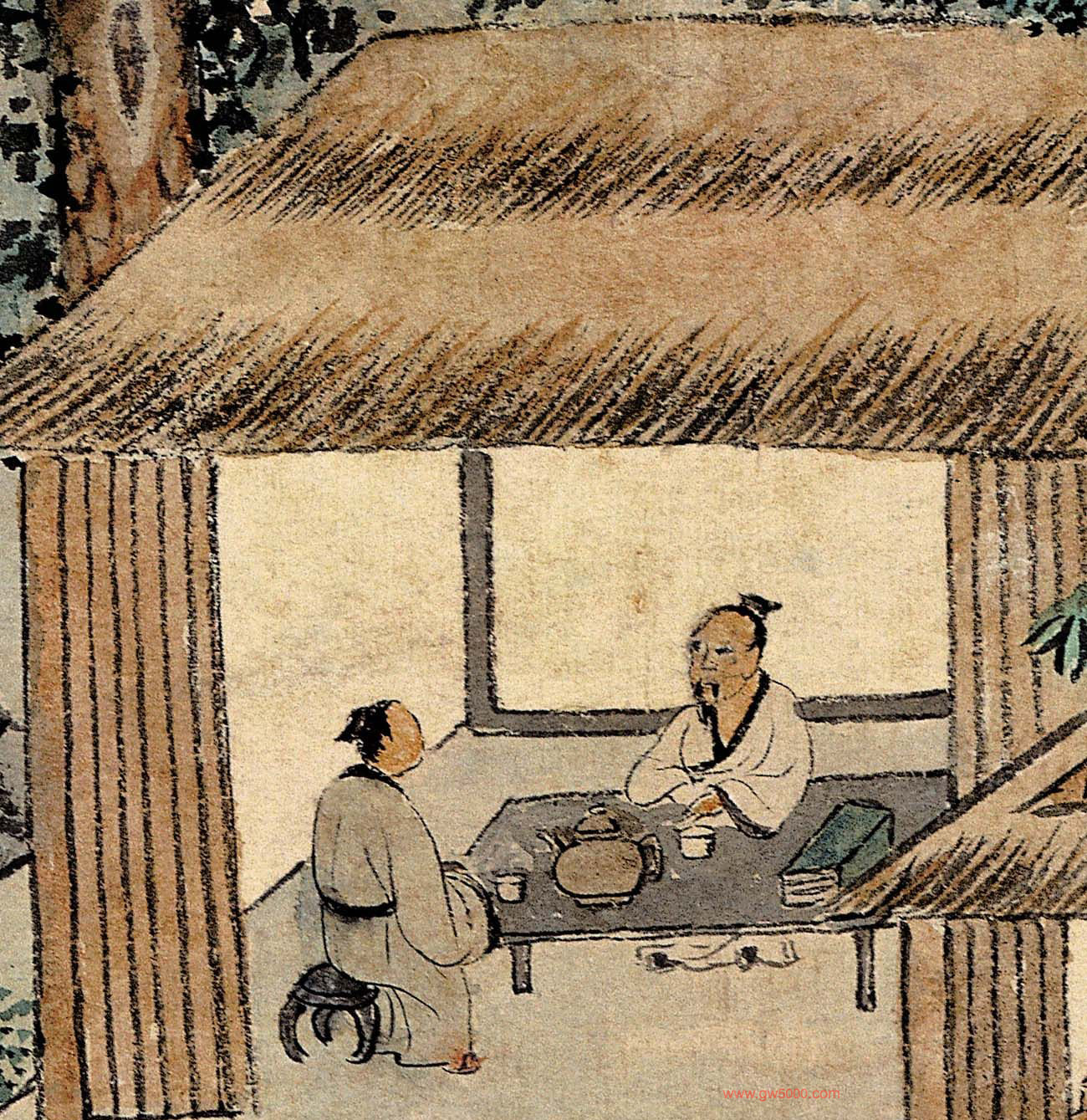 文徵明題詩:碧山深處絕纖埃,面面軒窗對水開。穀雨乍過茶事好,鼎湯初沸有朋來。