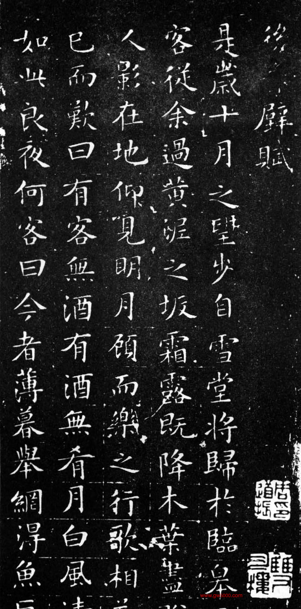 文徵明小楷《前后赤壁赋》江济刻本,嘉靖二十四年乙巳(1545)正月二日,文征明七十六岁为陈伯慧书赤壁赋册,自识谓“东坡言曹孟德气势消灭无余,盖讥当时用事者”。