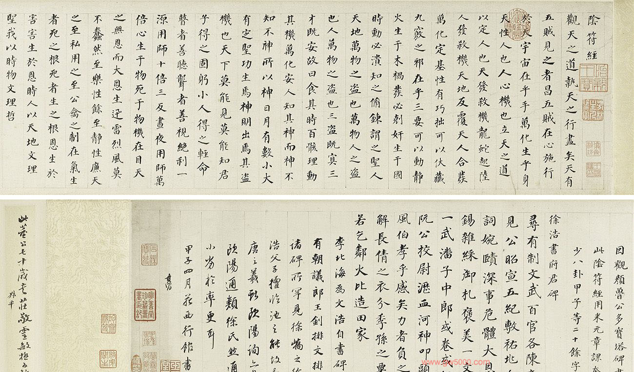 明代董其昌70岁楷书《阴符经府君碑卷》,纸本25.1×143.4厘米,天启四年(1624),上海博物馆藏。