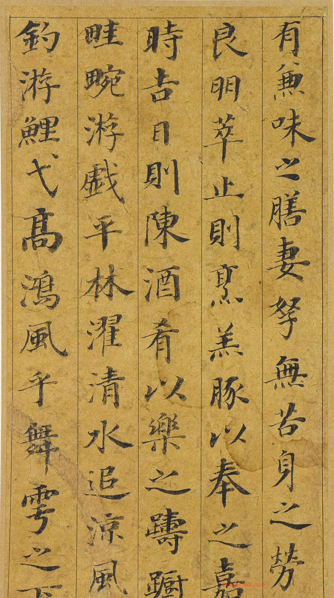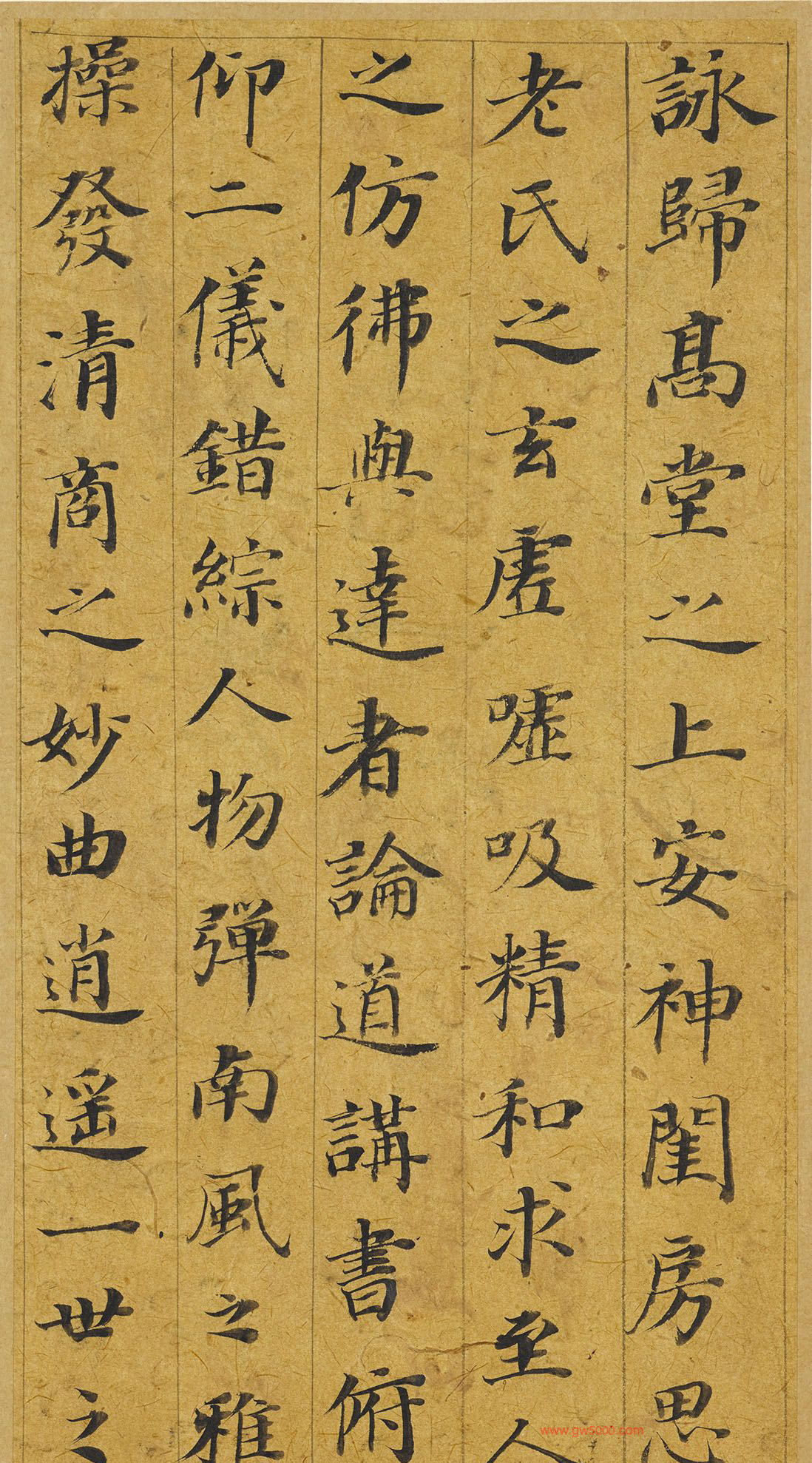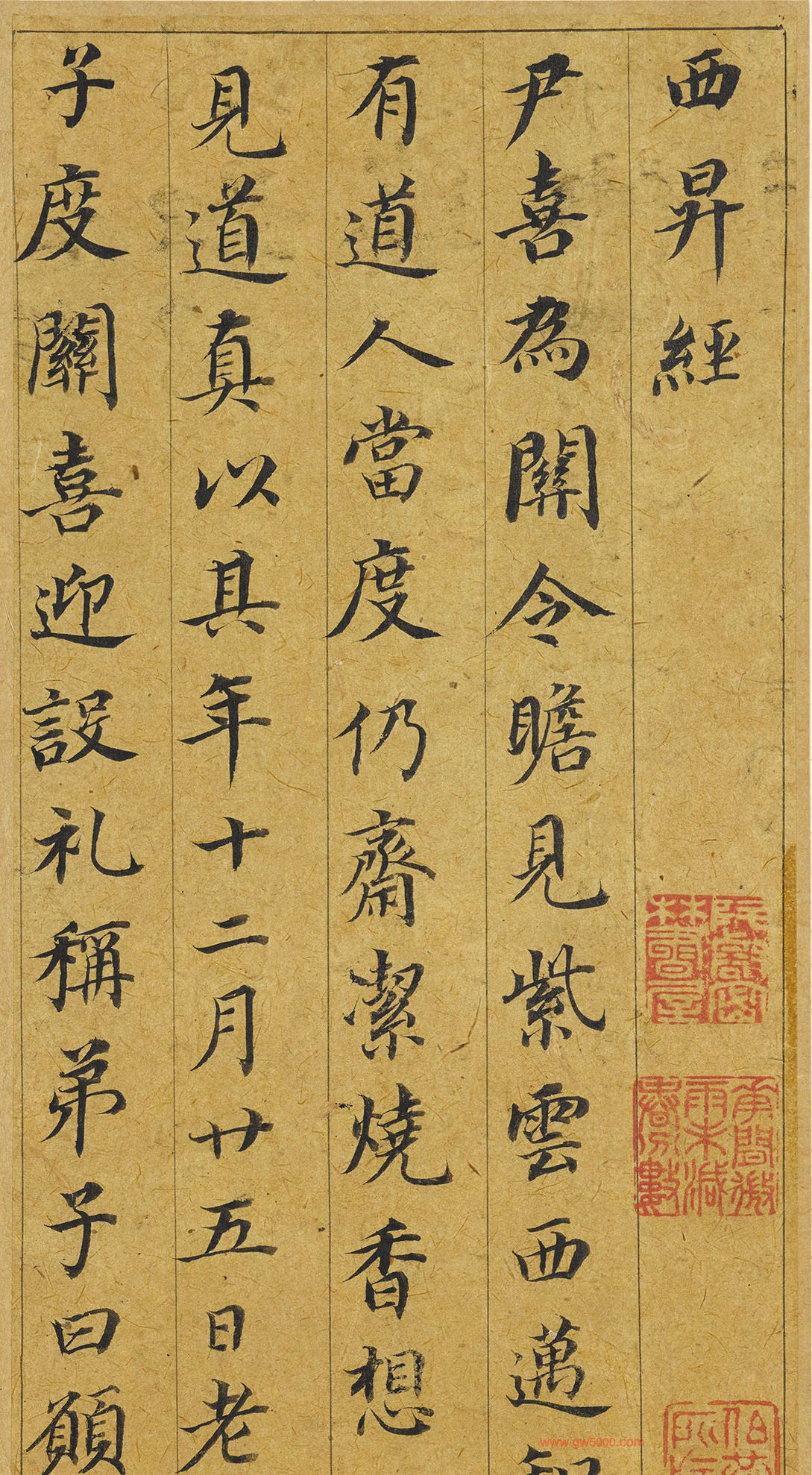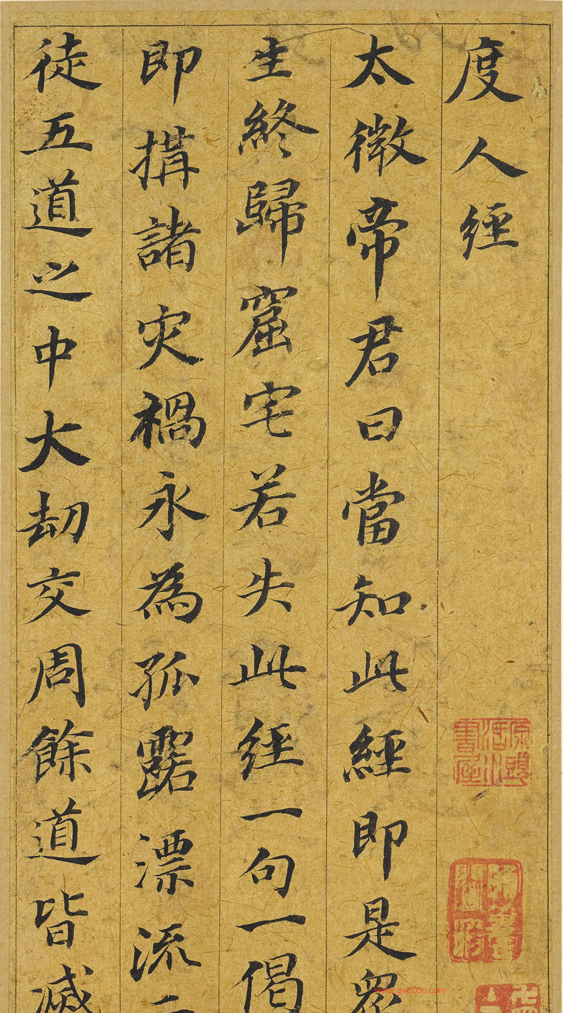 此册小楷书《乐志论》一篇,又《阴符》、《西升》、《度人》、《内景》、《清净》五经各一段。《乐志论》书于万历四十六年(1618),余各篇书于1620年,董氏时年分别为64、66岁。由于关系到科举和仕途,董其昌对小楷非常重视,从钟、王小楷,到唐代各大家,甚至宋元人小楷,无不加以关注。此册所写的五本经都有古代大家的传本得到董氏鉴藏,其中《内景经》还曾刻于《戏鸿堂帖》卷首。