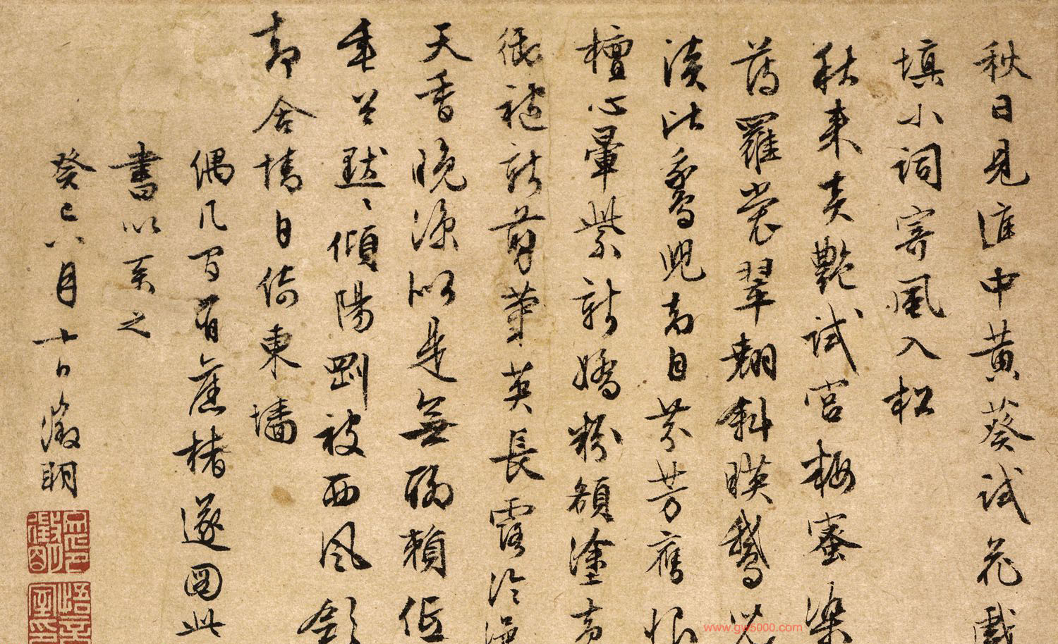 文徵明64岁书法题秋葵图,嘉靖十二年癸巳(1533)八月,台北故宫博物院藏。