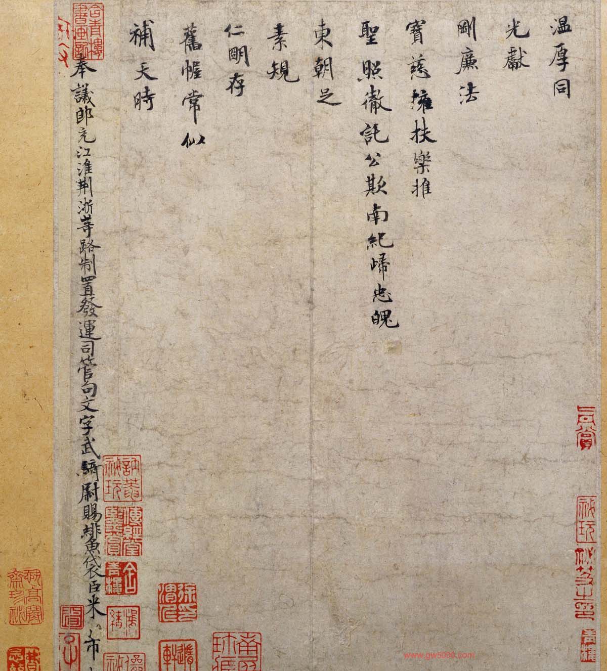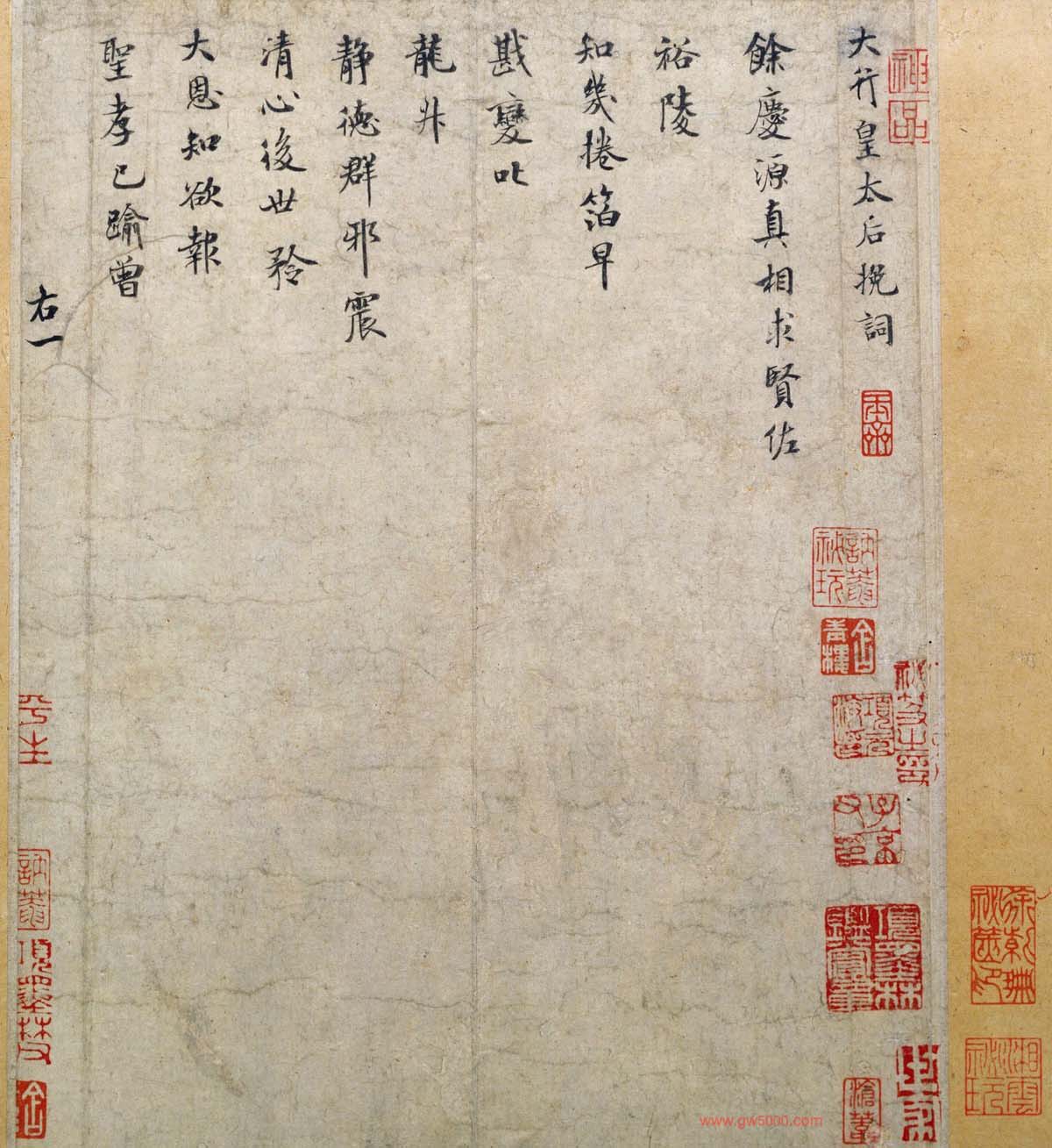 米芾《向太后挽词帖》是其五十一岁时所书。其结字介于行楷之间,笔法精炼,正如前人所说:“研笔如铁,而秀媚之气奕奕行间,风华类得大令(王献之)之神,是南宫得意笔。”米芾这样精致的小楷是极为少见的。叶恭绰记《宋米元章〈向太后挽词〉》载:“米元章书法,以小楷为最佳,但现存仅一件,即《向太后挽词》也。其实,亦系行楷。