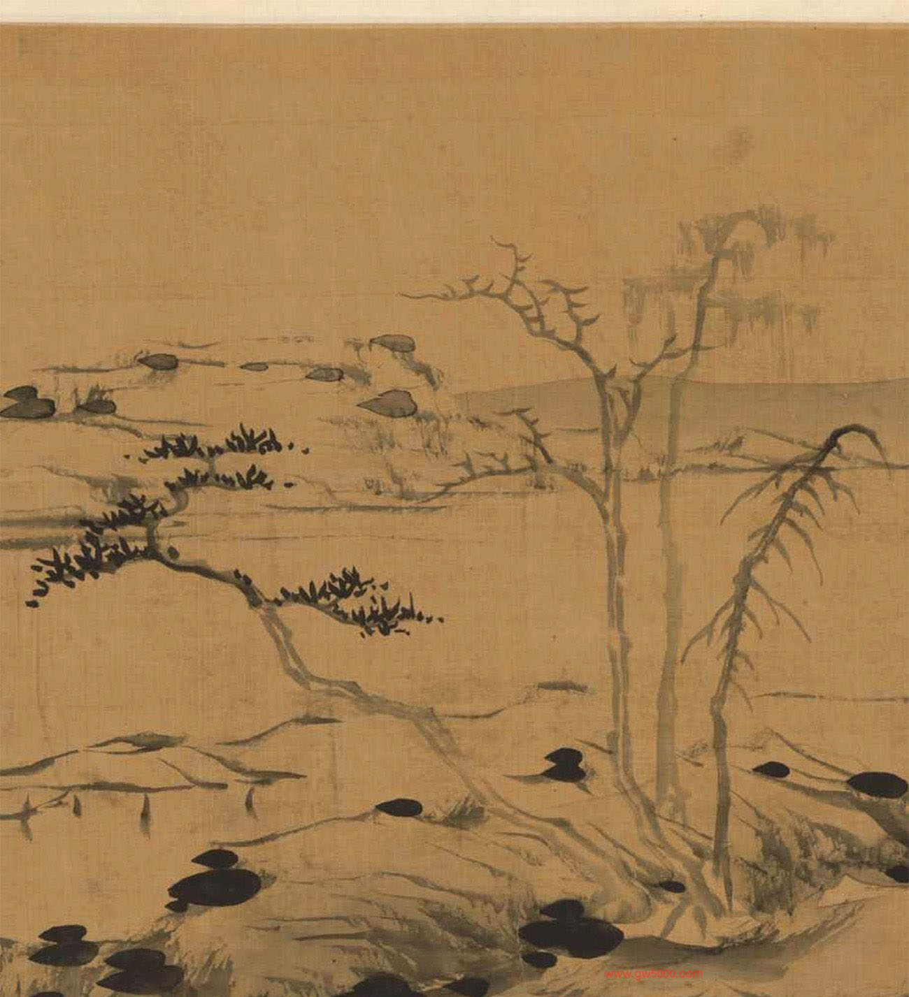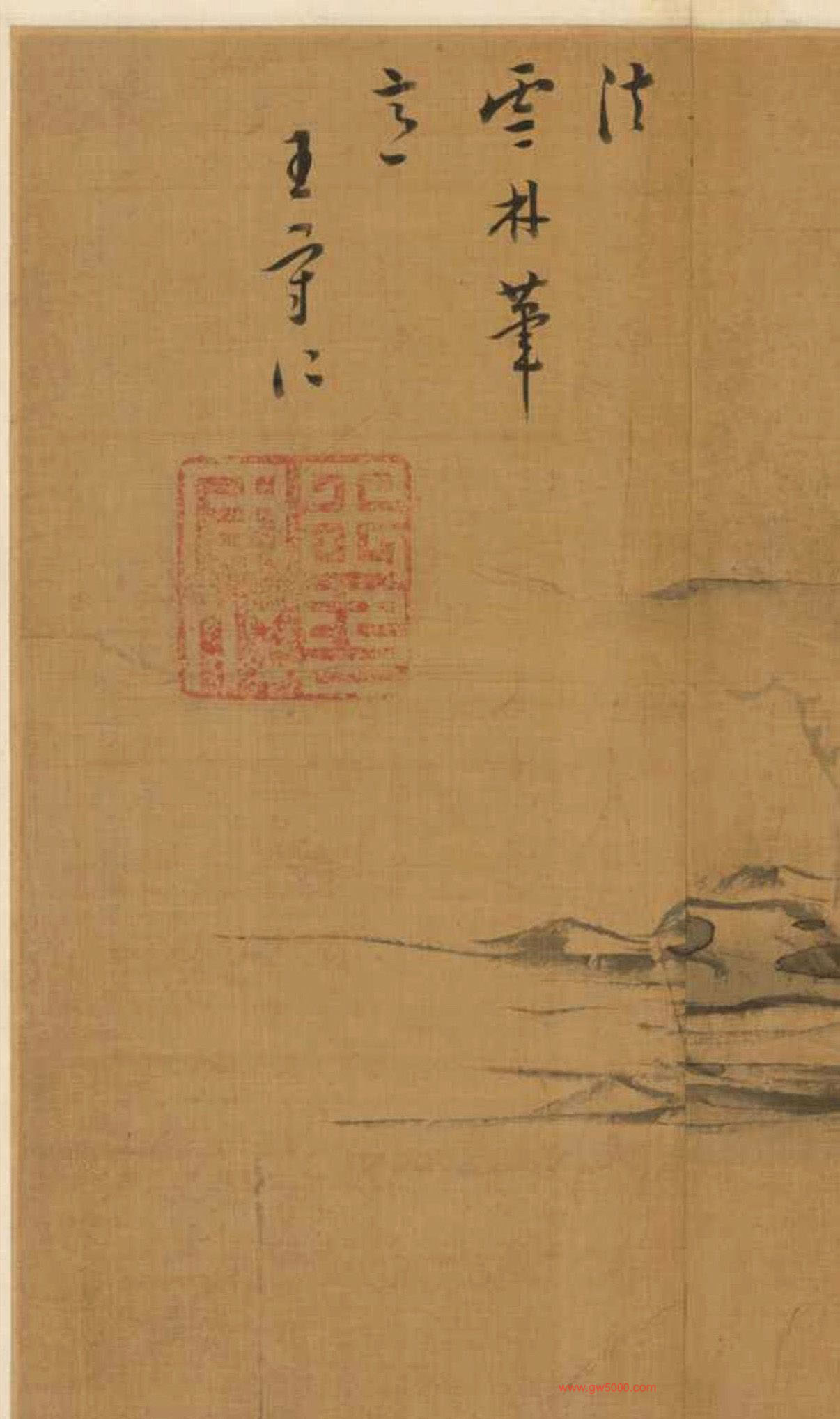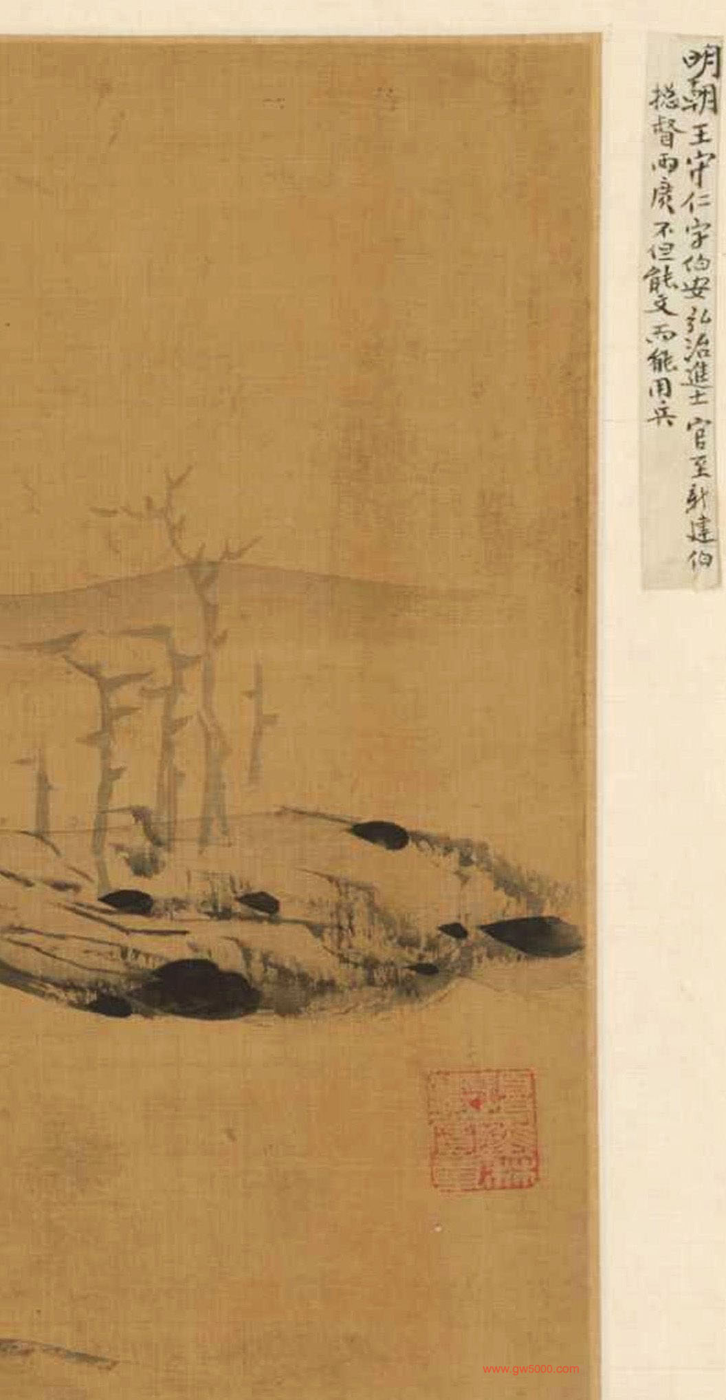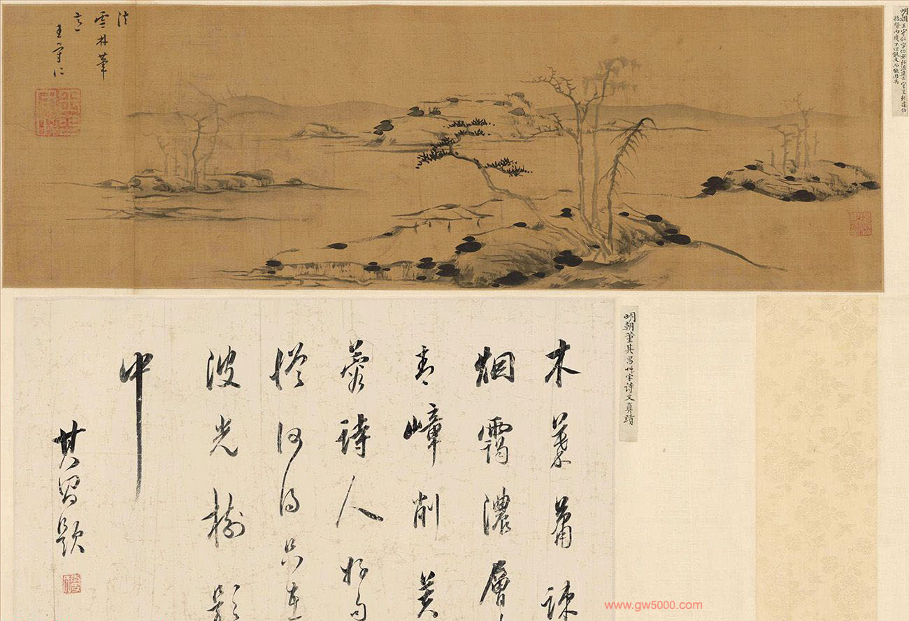 王守仁《法云林笔意》董其昌诗文真迹,来源:李郡游春图卷,故宫博物院藏。