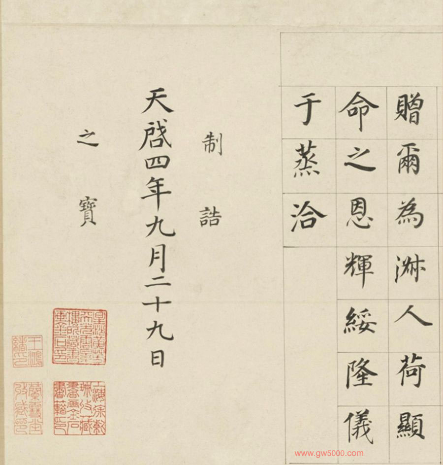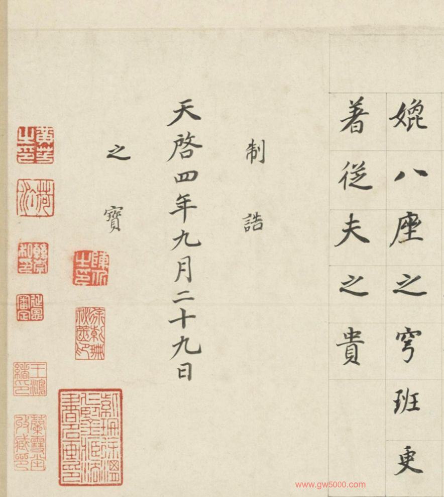 董其昌楷书《三世自诰卷》,明天启四年(1624)董文敏时年七十岁书。故宫博物院藏。