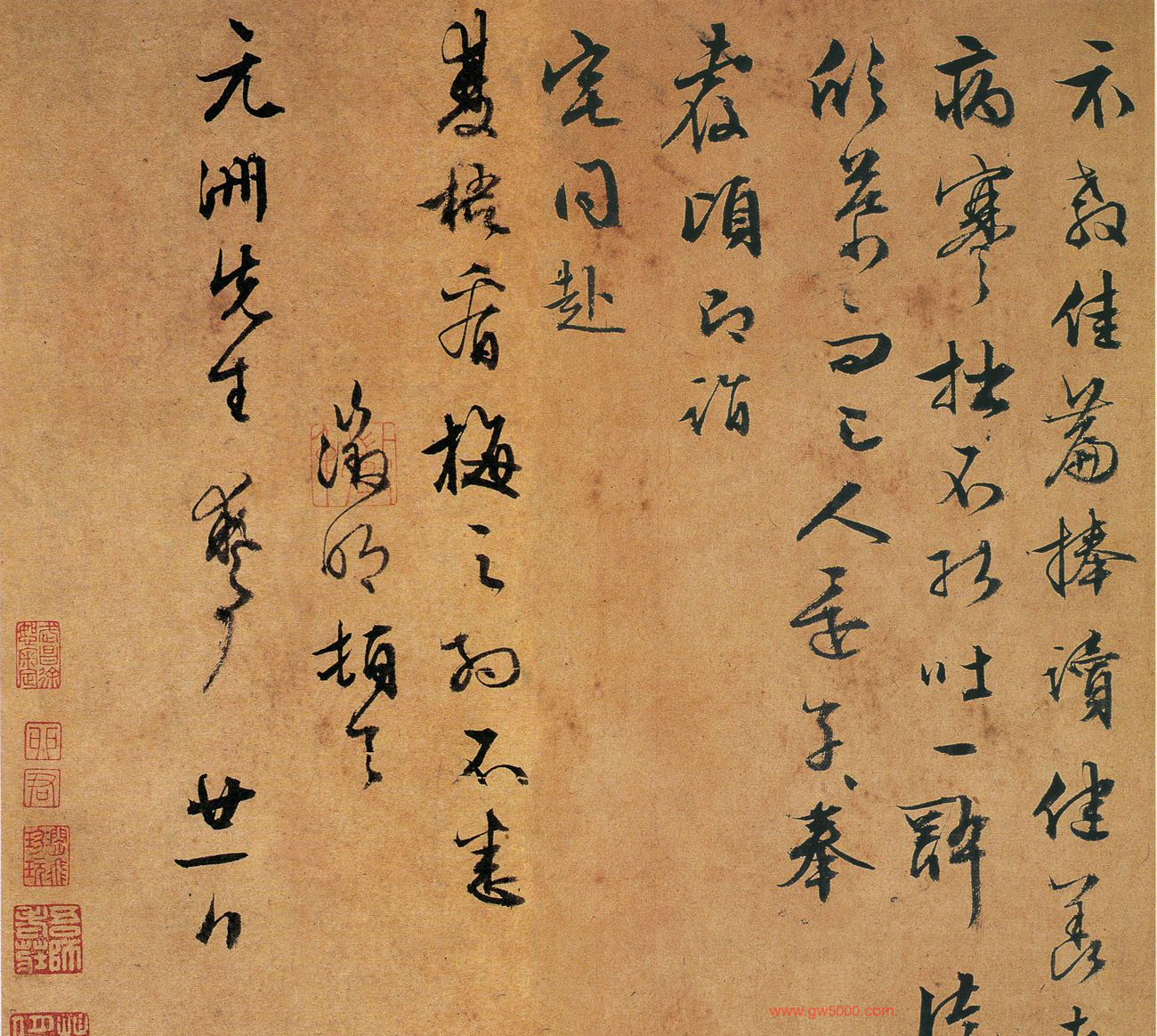 释文:示教佳篇,捧读健羡,老病寒拙,不能吐一辞,徒欣慕而已。人还,草草奉覆,顷即诣宅,同赴双梧看梅之约,不悉。徵明顿首。元洲先生执事。廿一日。
