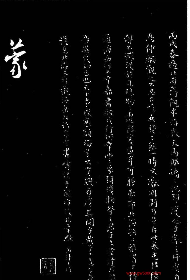 北宋大书法家米芾行书《天马赋》(传) 在米芾传世的作品中,《天马赋》被康熙誉为前无古人。但长期以来,对于《天马赋》真迹却莫衷一是,存在很大的争议。明代书法家董其昌称自己看见过四种刻本的《天马赋》,其一后题“平海大师书”;其二后有元代黄公望跋,称“展视之时,有大量贯斗而堕,其声如雷”;其三被称为“吴本”,多枯笔,“别是一种米书”;其四就是董其昌自己所刻。参看另一版本:米芾行书珍品《天马赋》大图