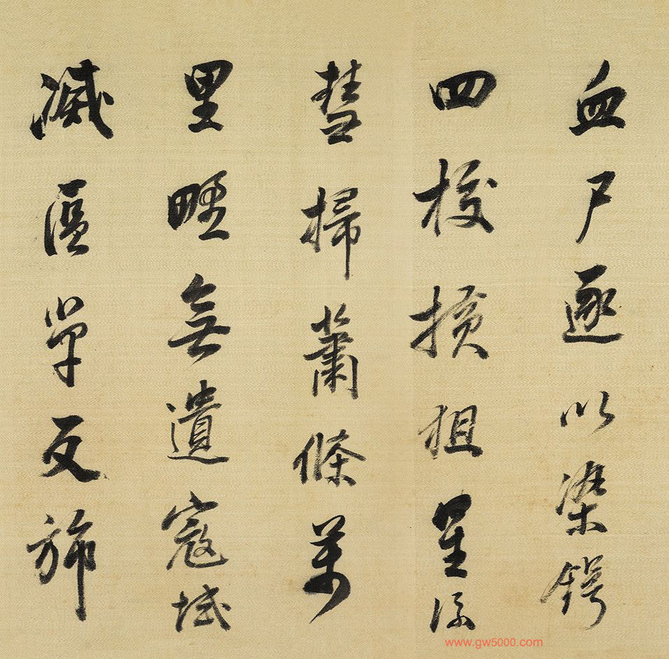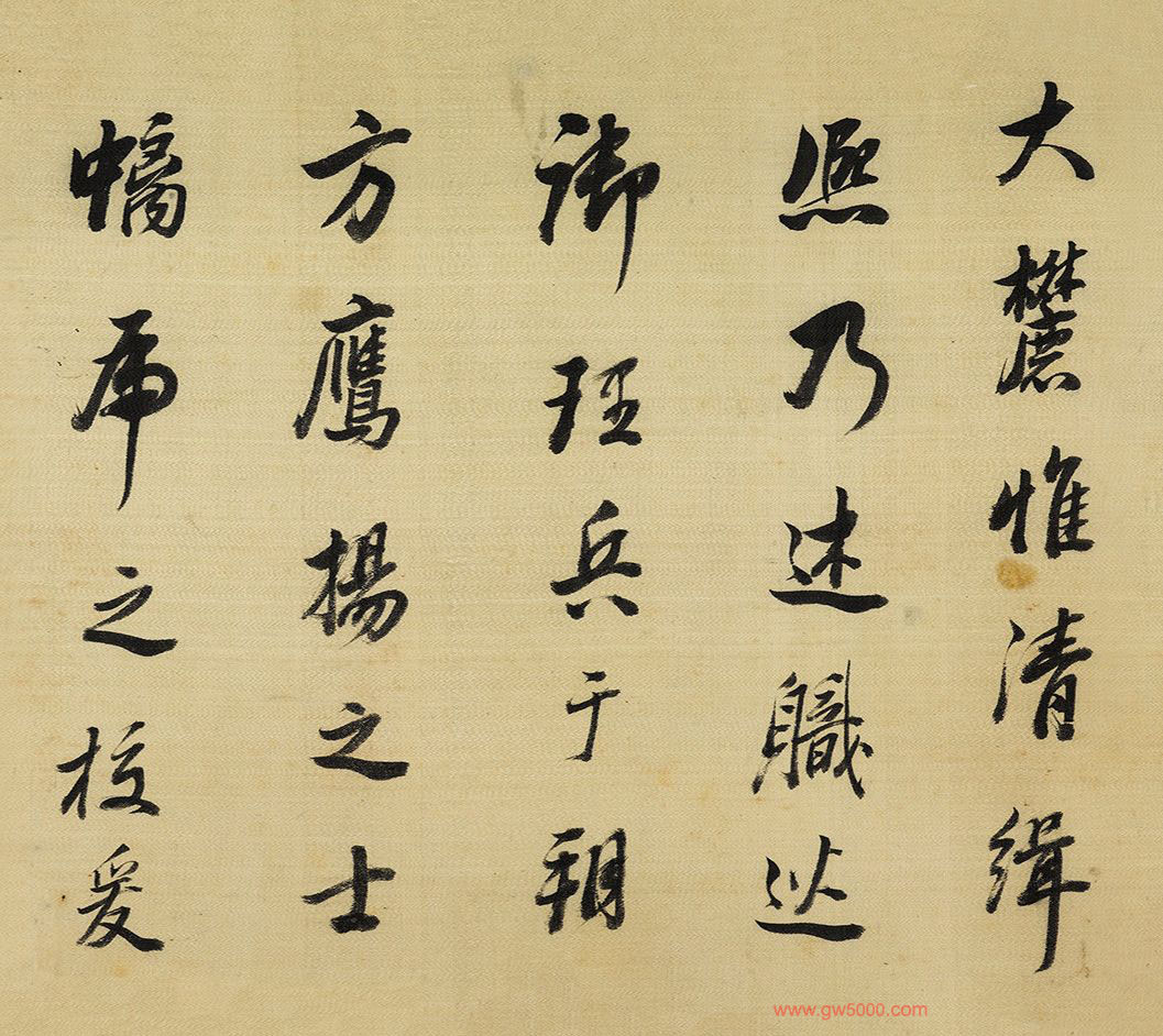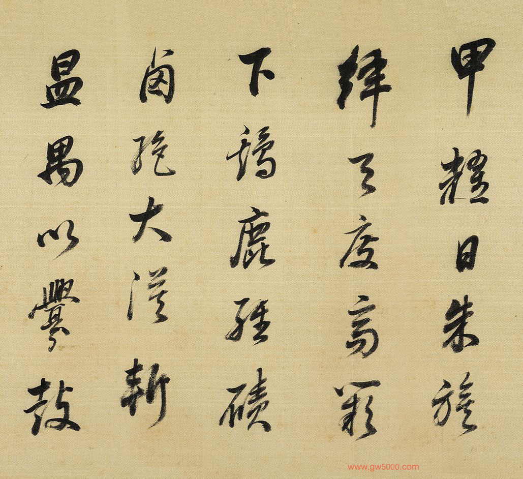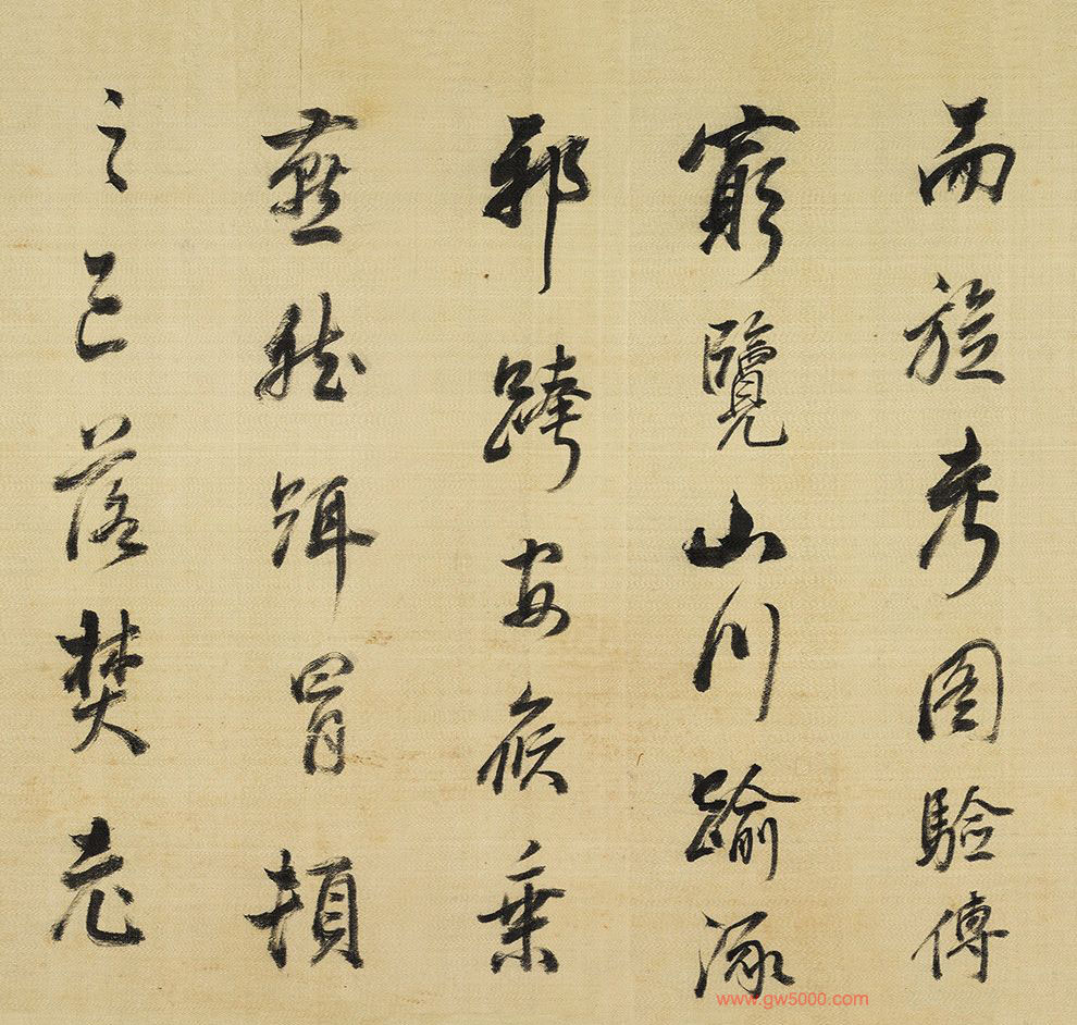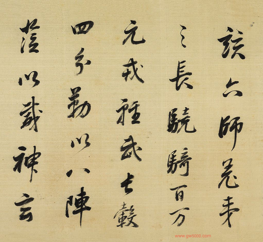 此卷为董氏晚年以米芾笔意所书《燕然山铭》,钤“宗伯学士”印,故至少是1623年董氏70岁后作品。此卷绫本,较一般的学米之作更加沉厚,墨色清润,肌理亦显生涩稳重。与原文相比,董书有多处改写词句,并有错别字,这在董书中较为常见。董氏偏爱米书,于仿米最为得意。米芾写过几本《燕然山铭》,董亦多次临写。至于此卷系临摹哪本米芾书《燕然山铭》,卷后有张运题跋考释。