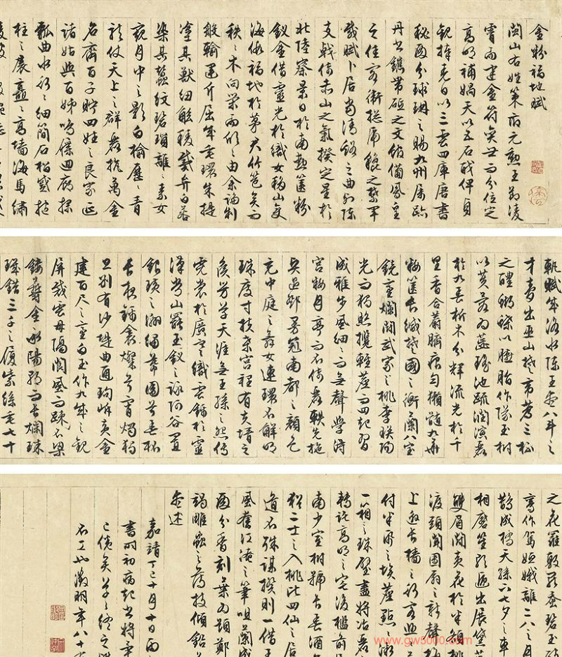 文徵明88岁书法手卷《金粉福地赋》,尺寸27×513cm,中贸圣佳国际拍卖有限公司2011秋拍品。