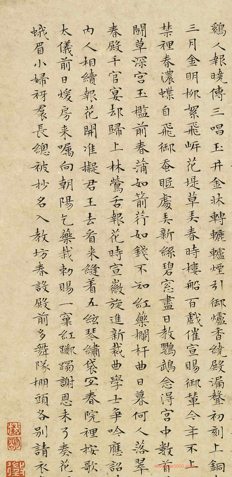 文徵明小楷書法《宮詞》(僞),来源:傳明仇英畫連昌宮詞,臺灣國立故宮博物院藏。