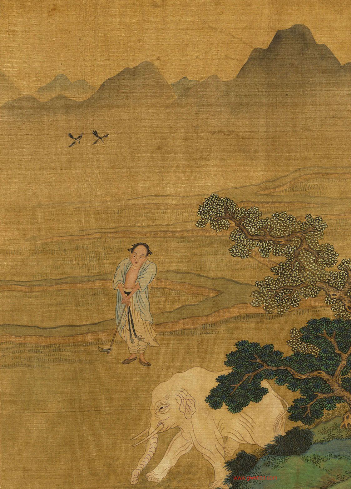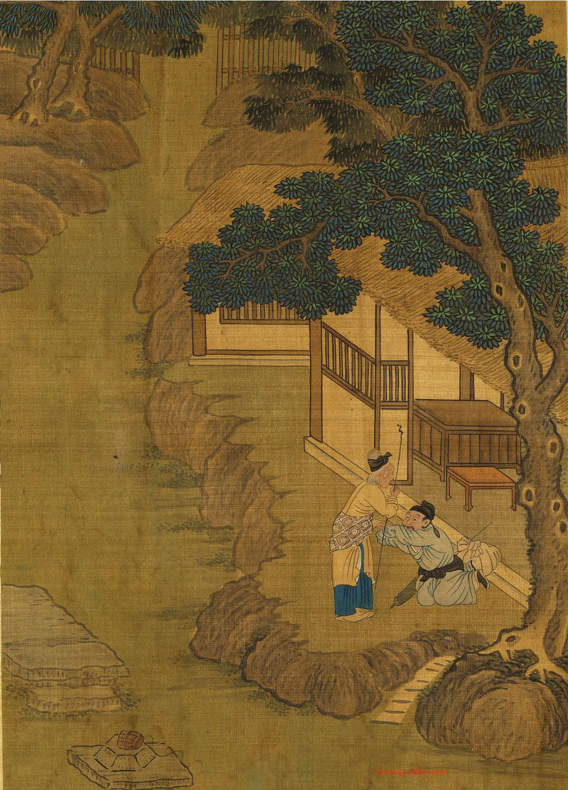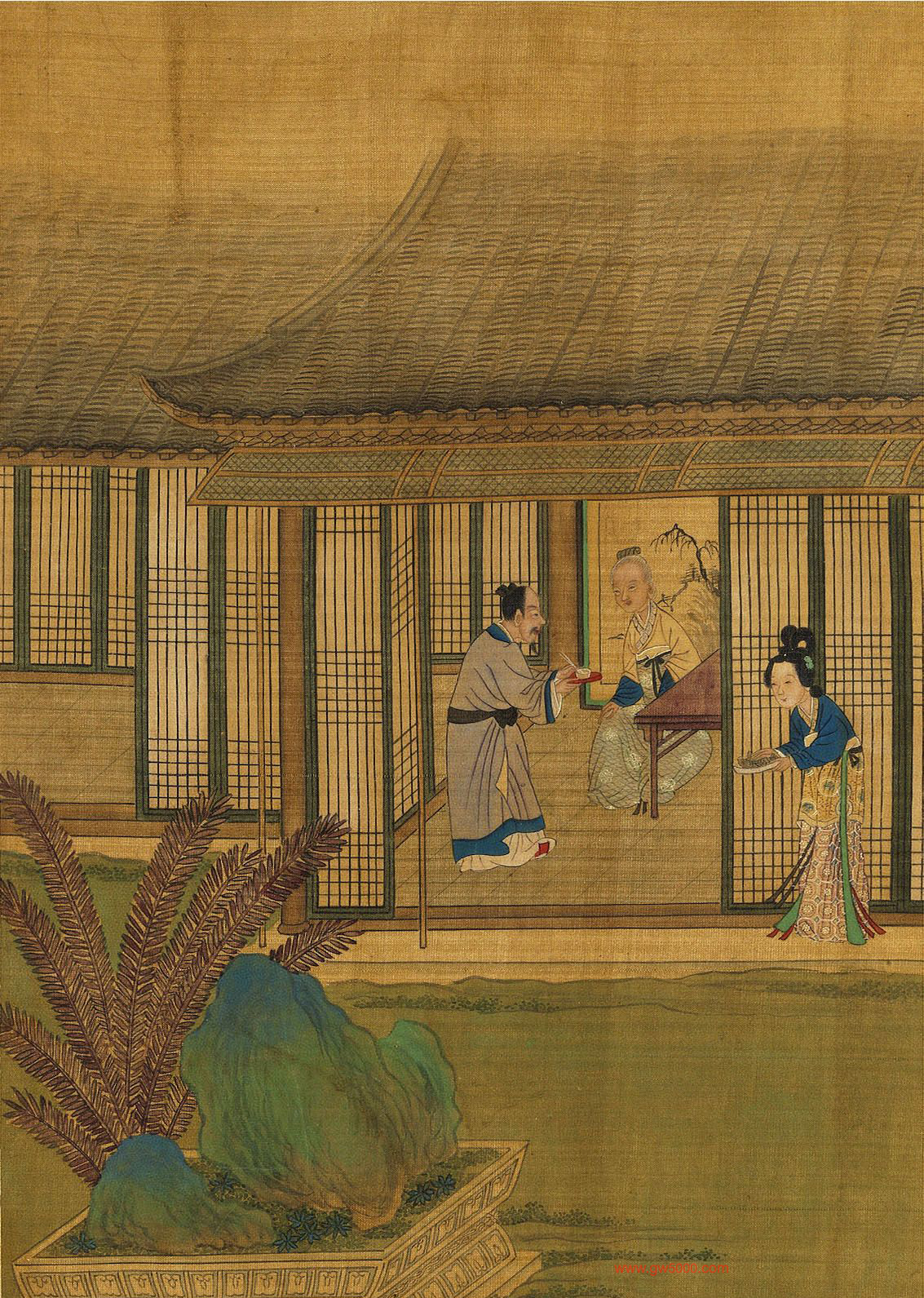 傳明仇英《純孝圖》册,絹本設色,縱32.8公分;橫21.9公分,台北故宫博物院藏。