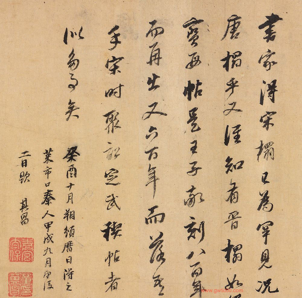 董其昌行书《跋王献之保母帖》,美国弗利尔美术馆藏。