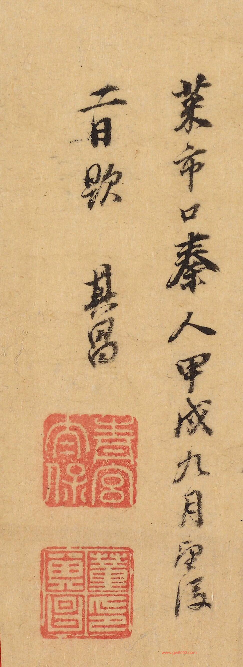 董其昌(1555-1636),字玄宰,号思白,松江华亭人,官至南京礼部尚书,谥文敏。世称“董香光”、“董文敏”、“董华亭”,在明末以书画名重海内。