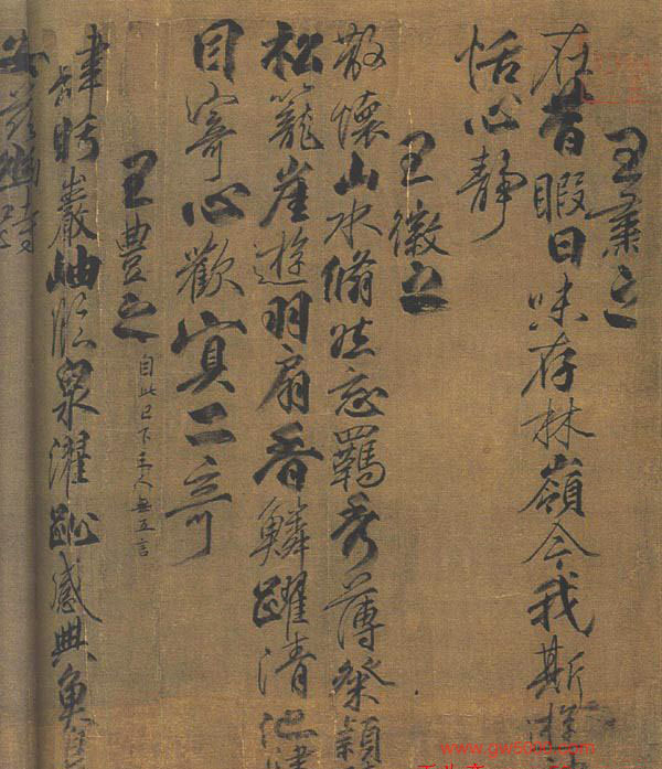 本卷笔法僵硬粗糙,且多枯锋,但较自然率易。卷后之宋代黄伯思尾题(伪)中云“传柳书”,细观之,个别字的用笔明显不是出自柳书,如:孙统四言诗中的“希”字、庾友四言诗中的“则”字、王涣之四言诗中的“足”字等末笔写的非常丑怪,字的结体亦多不沉稳,较浮躁,与柳氏所书王献之《送梨帖》后之题跋墨迹对比不但笔法不类,连结体也无丝毫相同之处。从诗文看,颇有不通处,如:把孙绰四言诗“怀彼伐木”误书为“怀彼代水”,把谢安四言诗“伊昔夫子”误书为“伊昔先子”。“伐木”是《诗经》中语,“夫子”是指孔丘,说明书写者是一位文墨不够精通之人。无论从艺术特征还是艺术水平来分析,该卷决非柳公权之笔。