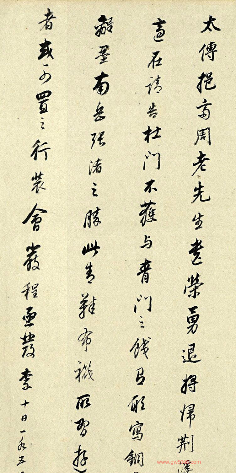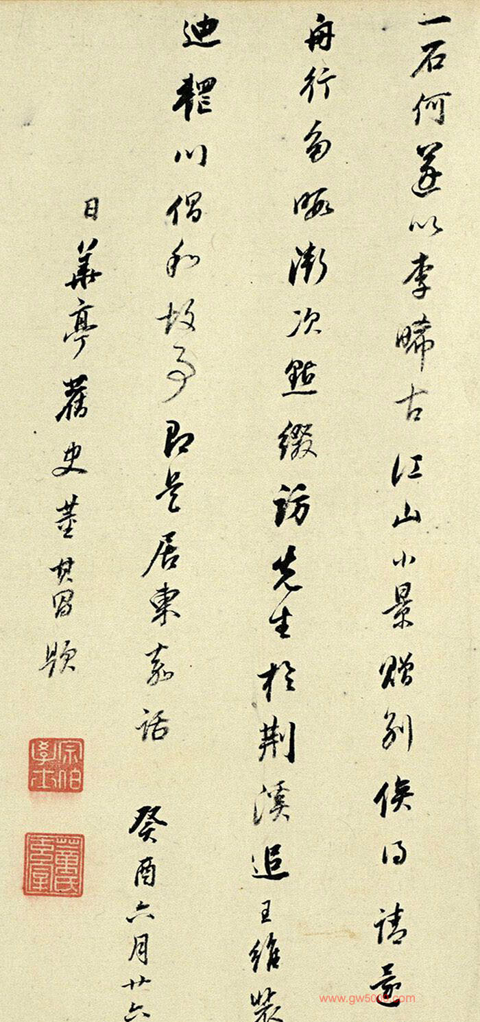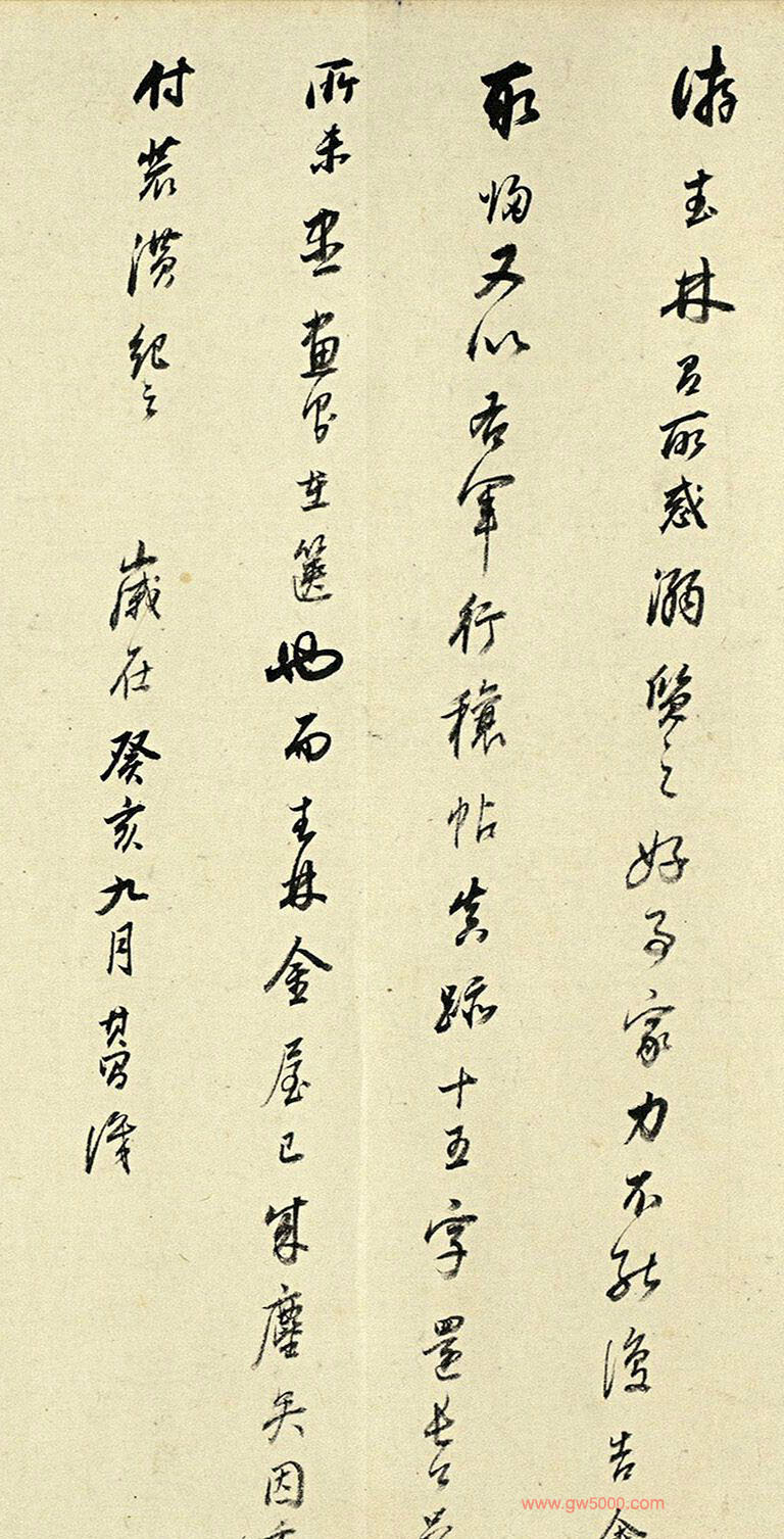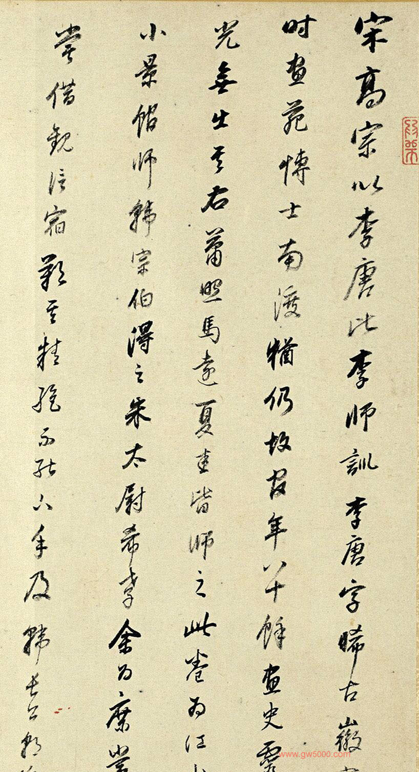 明代董其昌行书题跋宋李唐江山小景图卷,台北故宫博物院藏。
