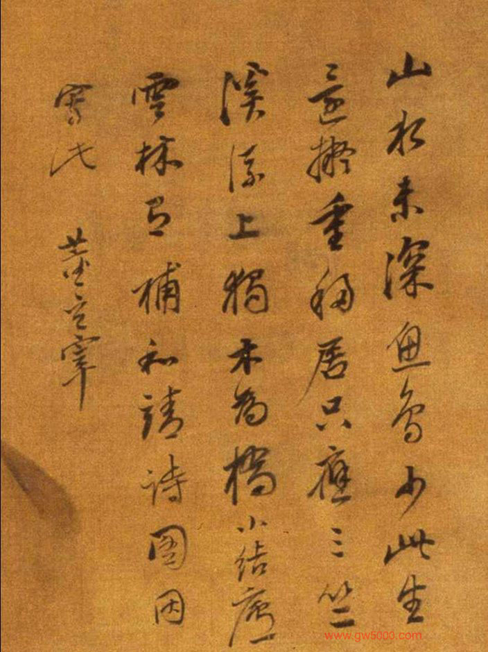 本幅自识:“山水未深鱼鸟少,此生还拟重移居。只应三竺溪流上,独木为桥小结庐。云林有补和靖诗图,因写此,董玄宰。”