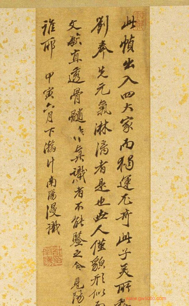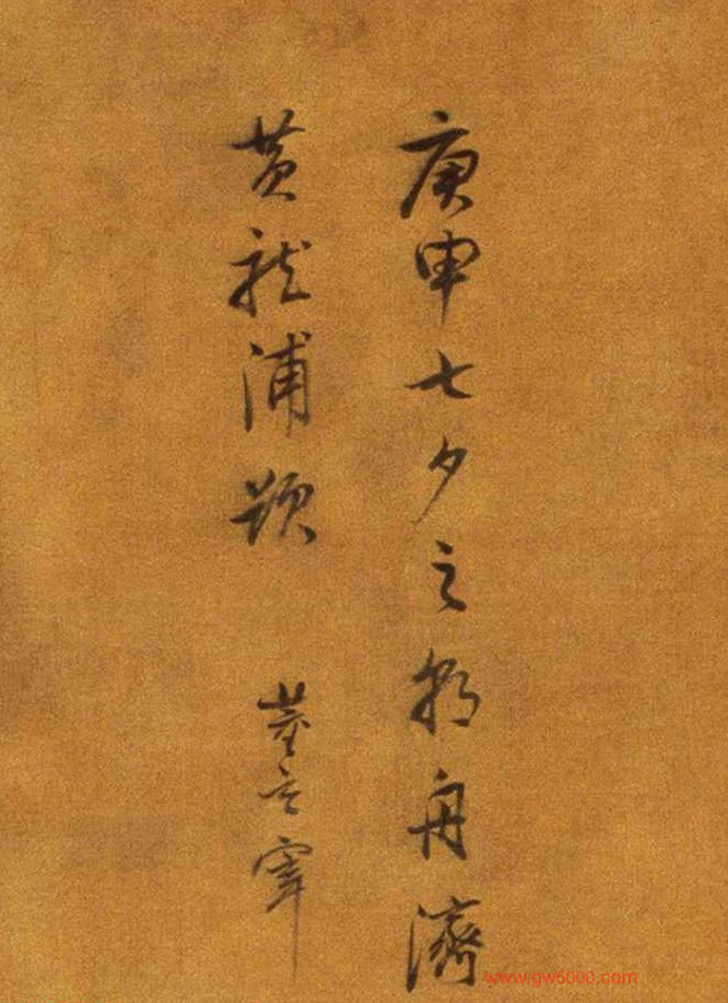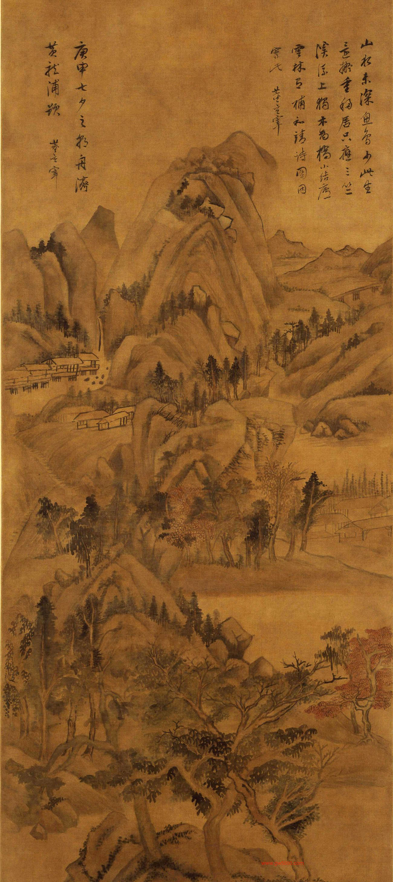 左上又题:“庚申七夕之朝舟济黄龙浦题。董玄宰。”