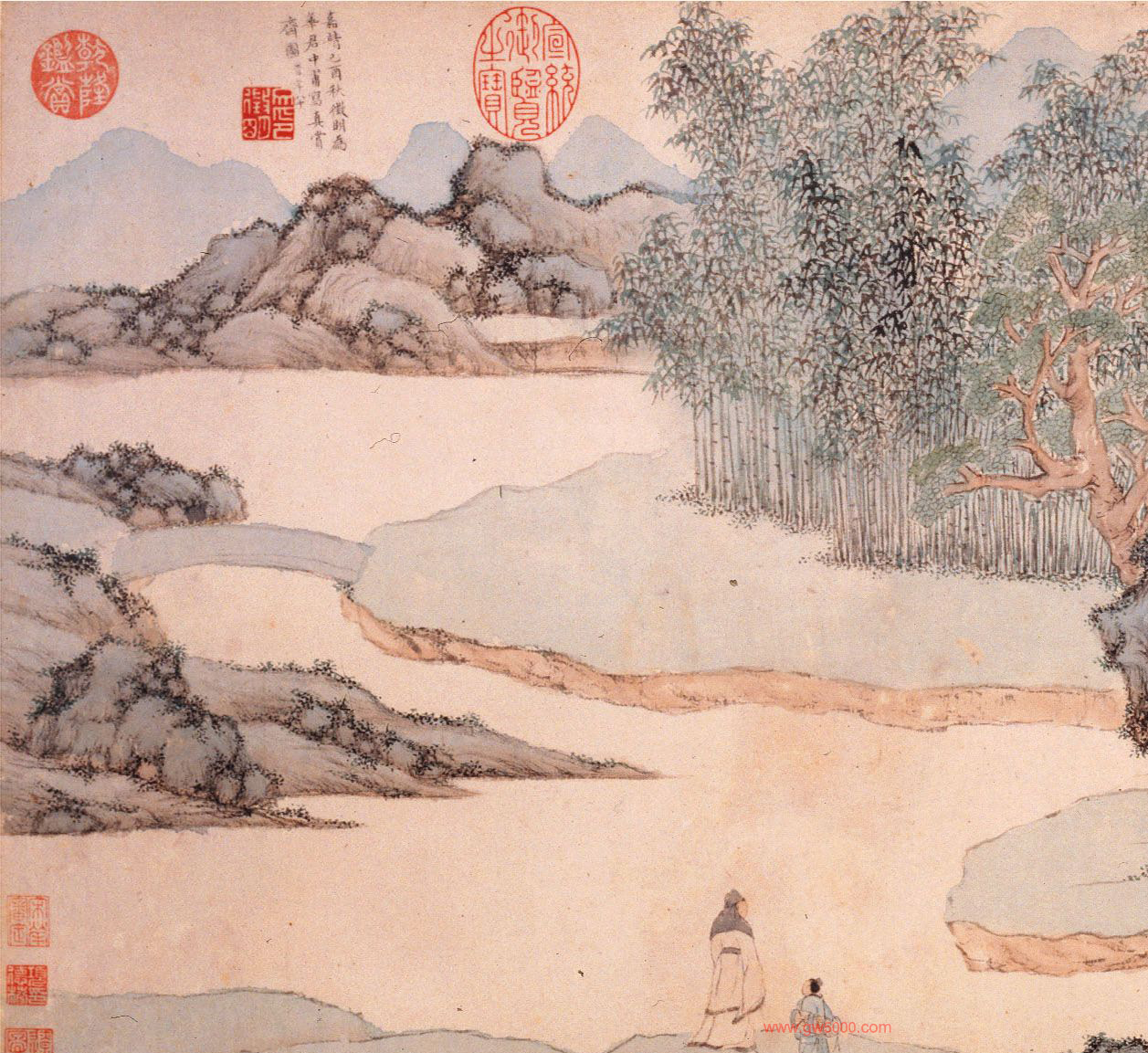 明代文徵明书画《真赏斋图》卷,尺寸:纵36厘米;横107.8厘米,纪年:嘉靖己酉(1549年),作者时年80岁;上海博物馆藏。