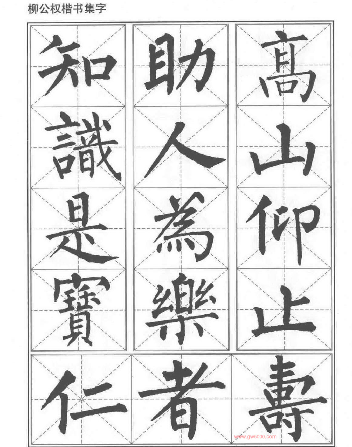 书法教程《柳公权楷书习字帖》全书扫描图片92张 柳公权(778-865),字诚悬,唐代著名书法家,柳公权书法以楷书著称,与颜真卿齐名,人称颜柳。他的书法初学王羲之,后来遍观唐代名家书法,认为颜真卿,欧阳询的字最好,便吸取了颜,欧之长,在晋人劲媚和颜书雍容雄浑之间,形成了自己的柳体,以骨力劲健见长,后世有 “颜筋柳骨”的美誉。