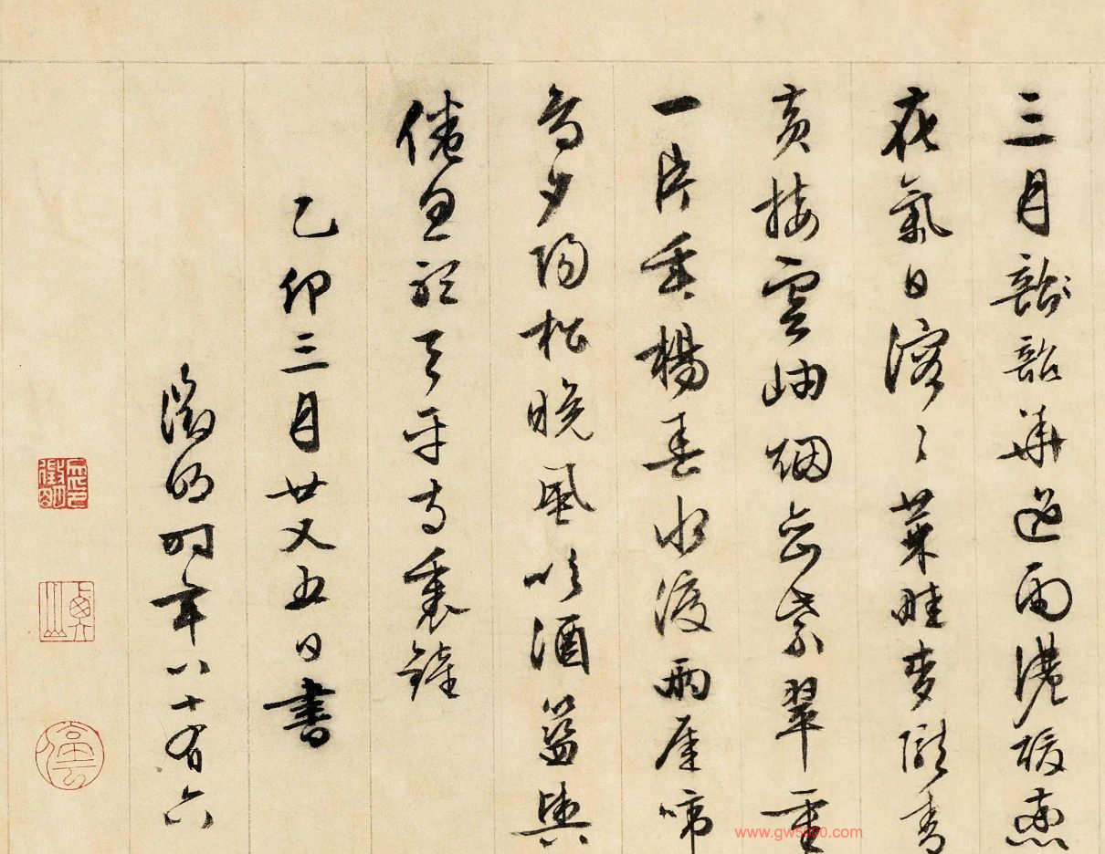 题识:乙卯三月廿又五日书。徵明时年八十有六。