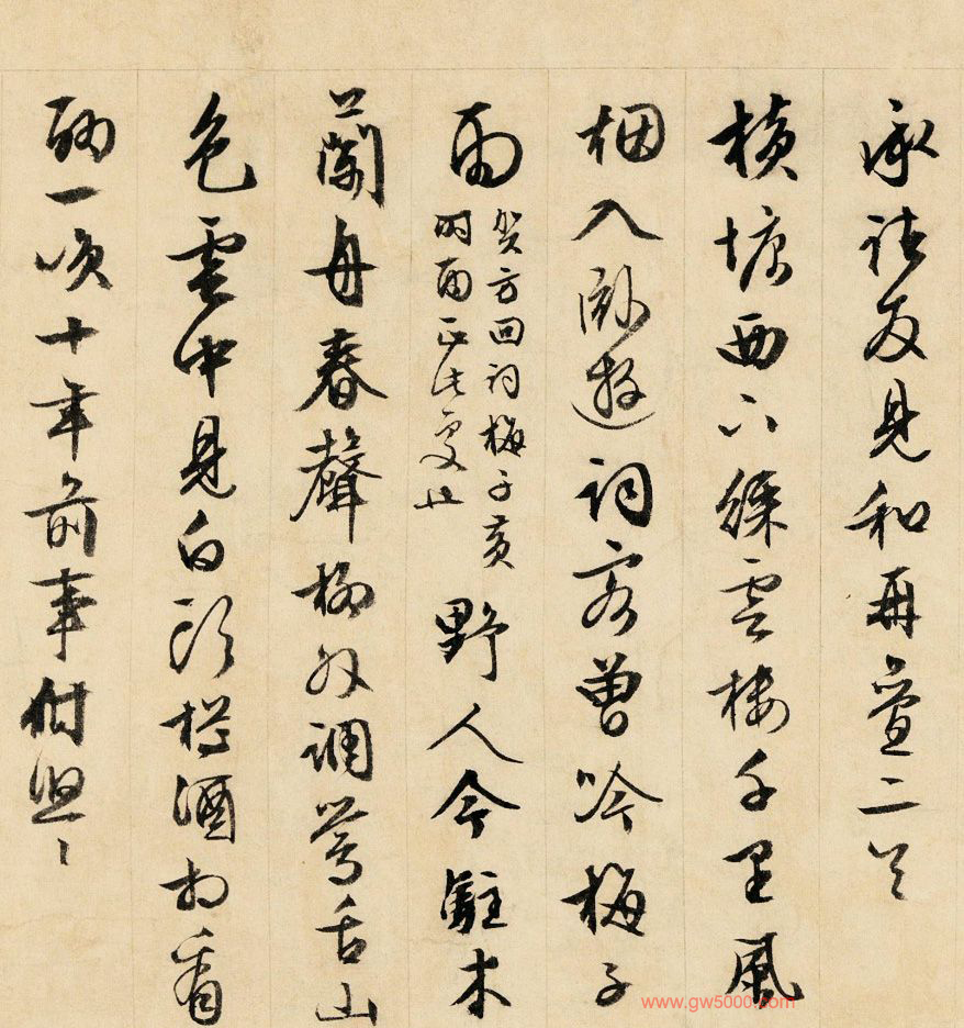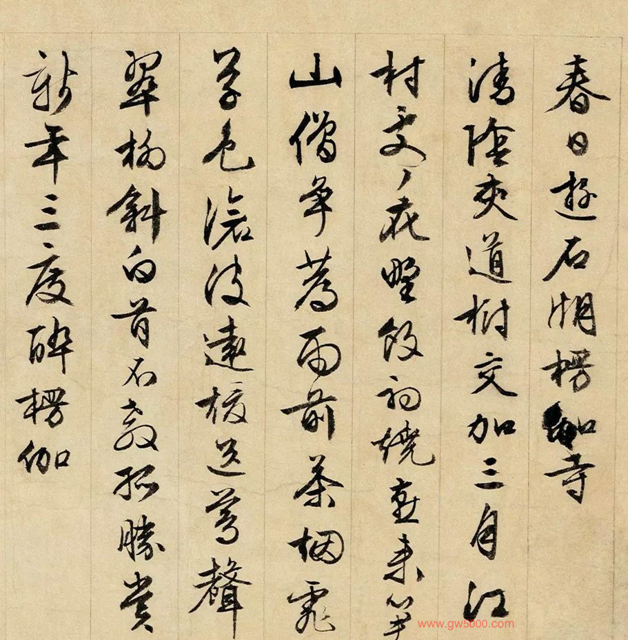 此卷文徵明自作诗,皆写故里家山,江南秀色。书法一如其人其诗,遒美劲健,处处不离法度而洒脱自如,功力与意趣俱足。当时,他已八十六岁高龄,犹能洋洋洒洒数百千言一气呵成而绝无懈笔误笔。可见其艺术与人生都已登上极高境界,堪称中国艺术史的一大奇迹。