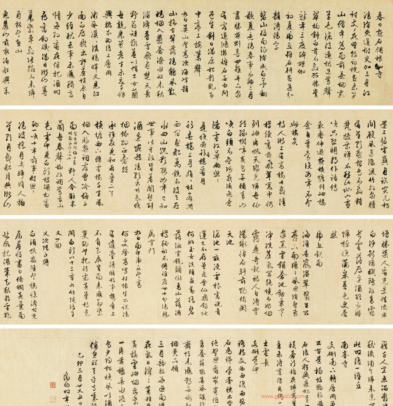 文徵明86岁行书手卷《自作诗十六首》,31×464cm。来源:嘉德春拍。