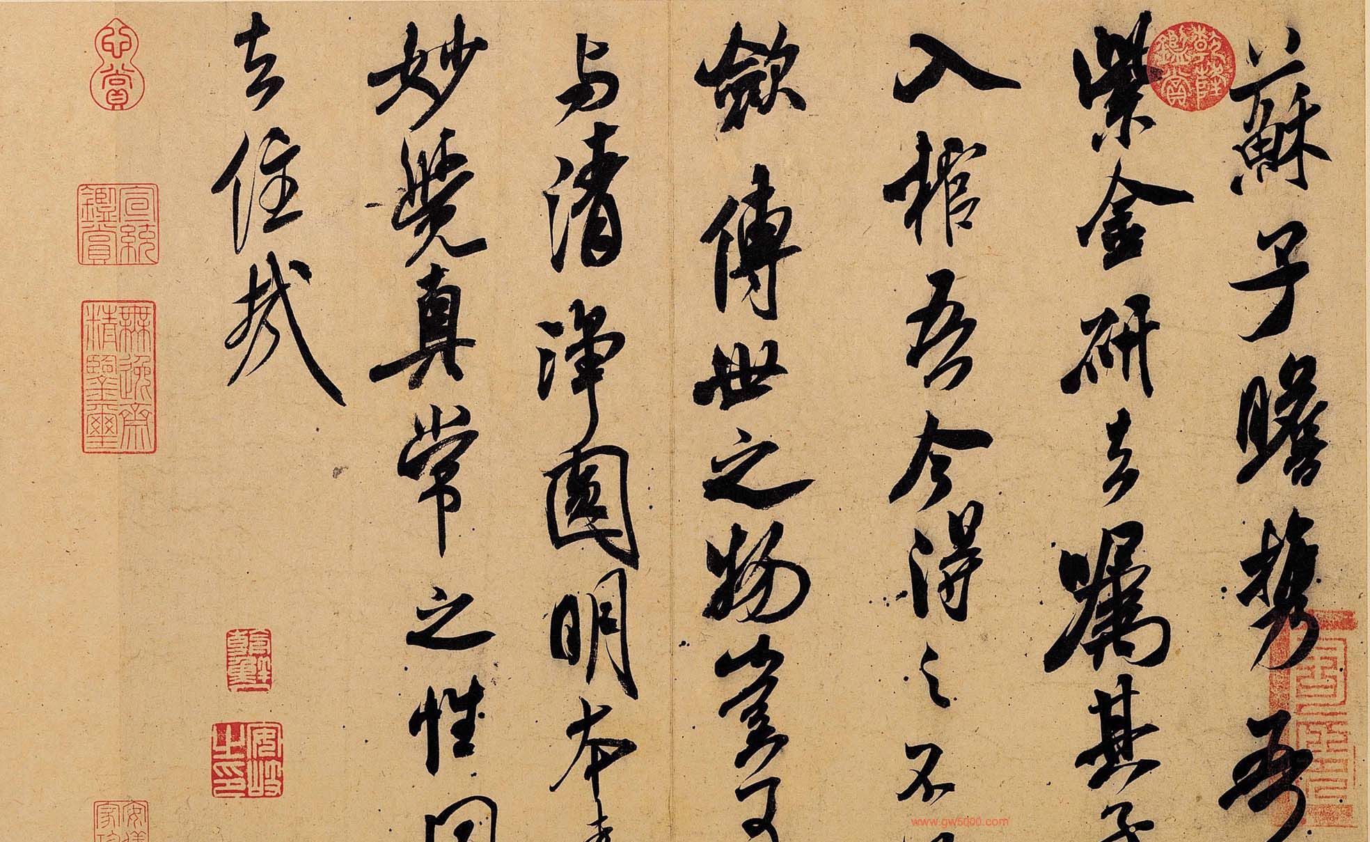 从此帖中,我们可以看到,米芾所谓的“刷”字,实际上是他令笔毫平铺纸上,以便运笔时能产生“万毫齐力”的效果。所以,可以说米芾的这个“刷”法,是适应行书发展到宋代,走向“尚意”之路以后技法上的新变化。