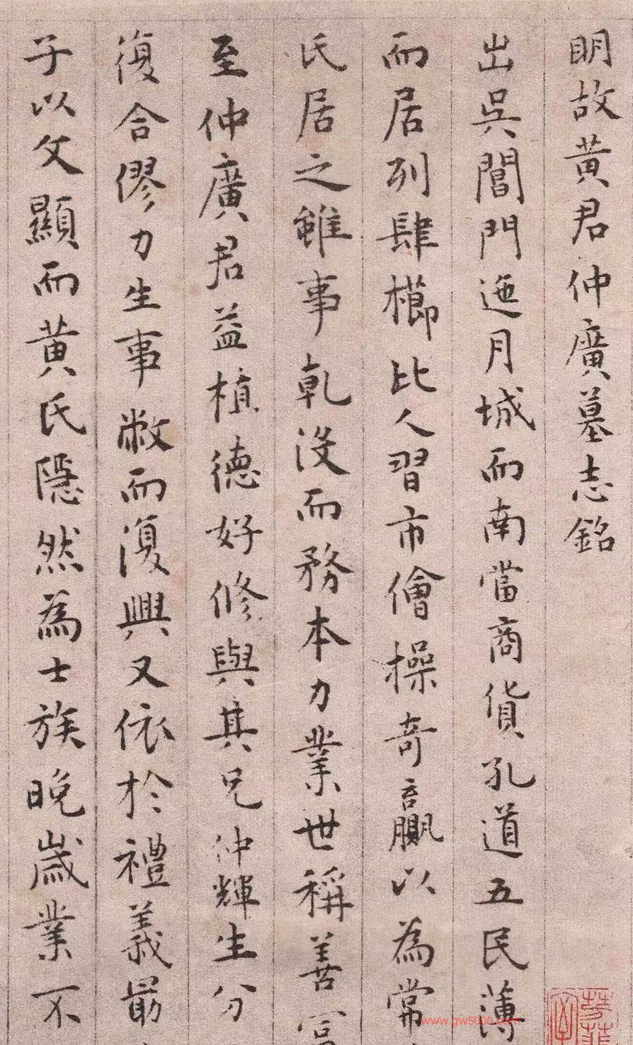文徵明49岁小楷《明故黄君仲广墓志铭》