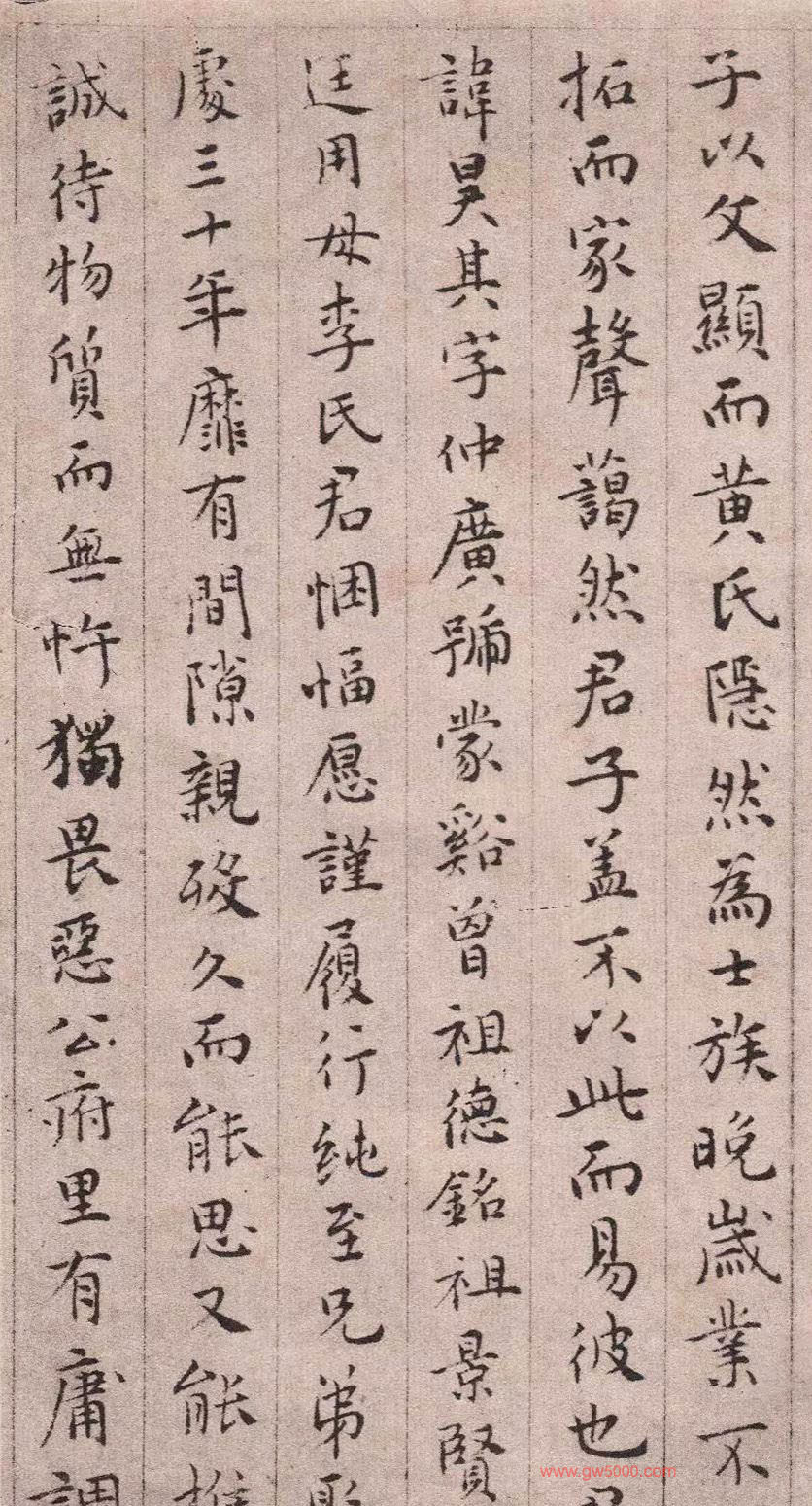 文徵明早期极力学习赵孟頫的小楷,还临习欧阳询、颜真卿的楷书,他四十九岁时写的《明故黄君仲广墓志铭》,颇带颜体。用笔藏锋,丰骨多筋。