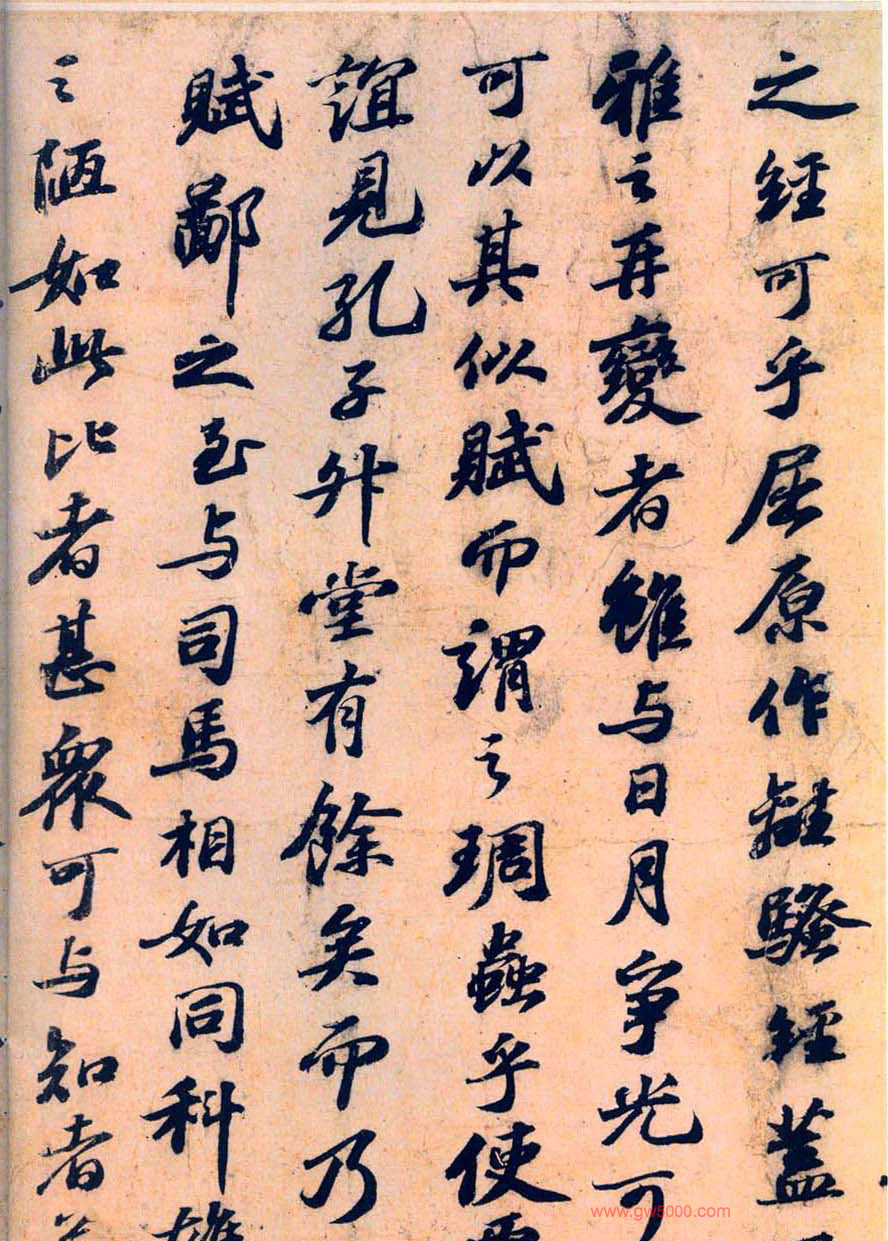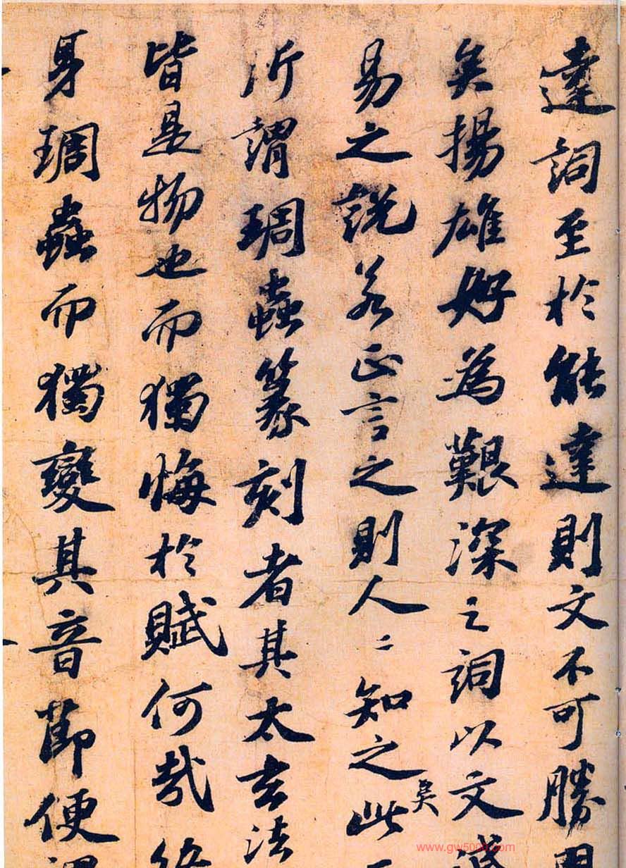 所示书教及诗赋杂文,观之熟矣。大略如行云流水,初无定质,但常行于所当行,常止于所不可不止,文理自然,姿态横生。孔子曰:“言之不文,行而不远。”又曰:“辞达而已矣。”夫言止于达意,即疑若不文,是大不然。求物之妙,如系风捕影,能使是物了然于心者,盖千万人而不一遇也,而况能使了然于口与手者乎?是之谓辞达。辞至于能达,则文不可胜用矣。扬雄好为艰深之辞,以文浅易之说,若正言之,则人人知之矣。此正所谓雕虫篆刻者,其《太玄》、《法言》,皆是类也。而独悔于赋,何哉?终身雕篆,而独变其音节,便谓之经,可乎?屈原作《离骚经》,盖《风》、《雅》之再变者,虽与日月争光可也。可以其似赋而谓之雕虫乎?使贾谊见孔子,升堂有馀矣;而乃以赋鄙之,至与司马相如同科。雄之陋如此比者甚众,可与知者道,难与俗人言也。因论文偶及之耳。欧阳文忠公言:“文章如精金美玉,市有定价,非人所能以口舌定贵贱也。”纷纷多言,岂能有益于左右,愧悚不已。
