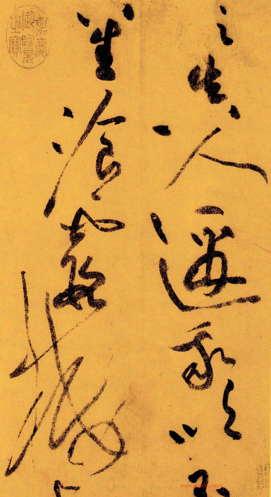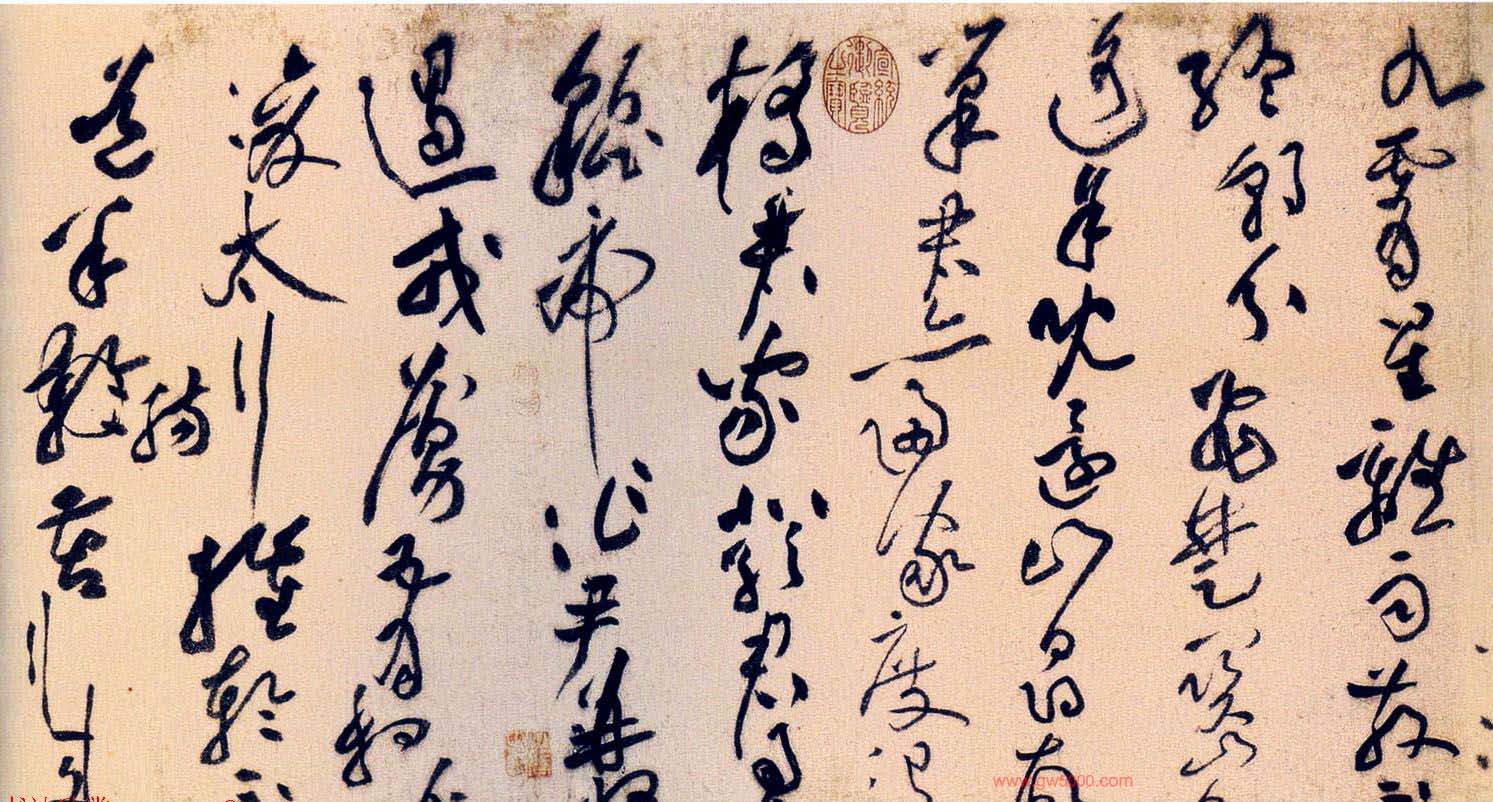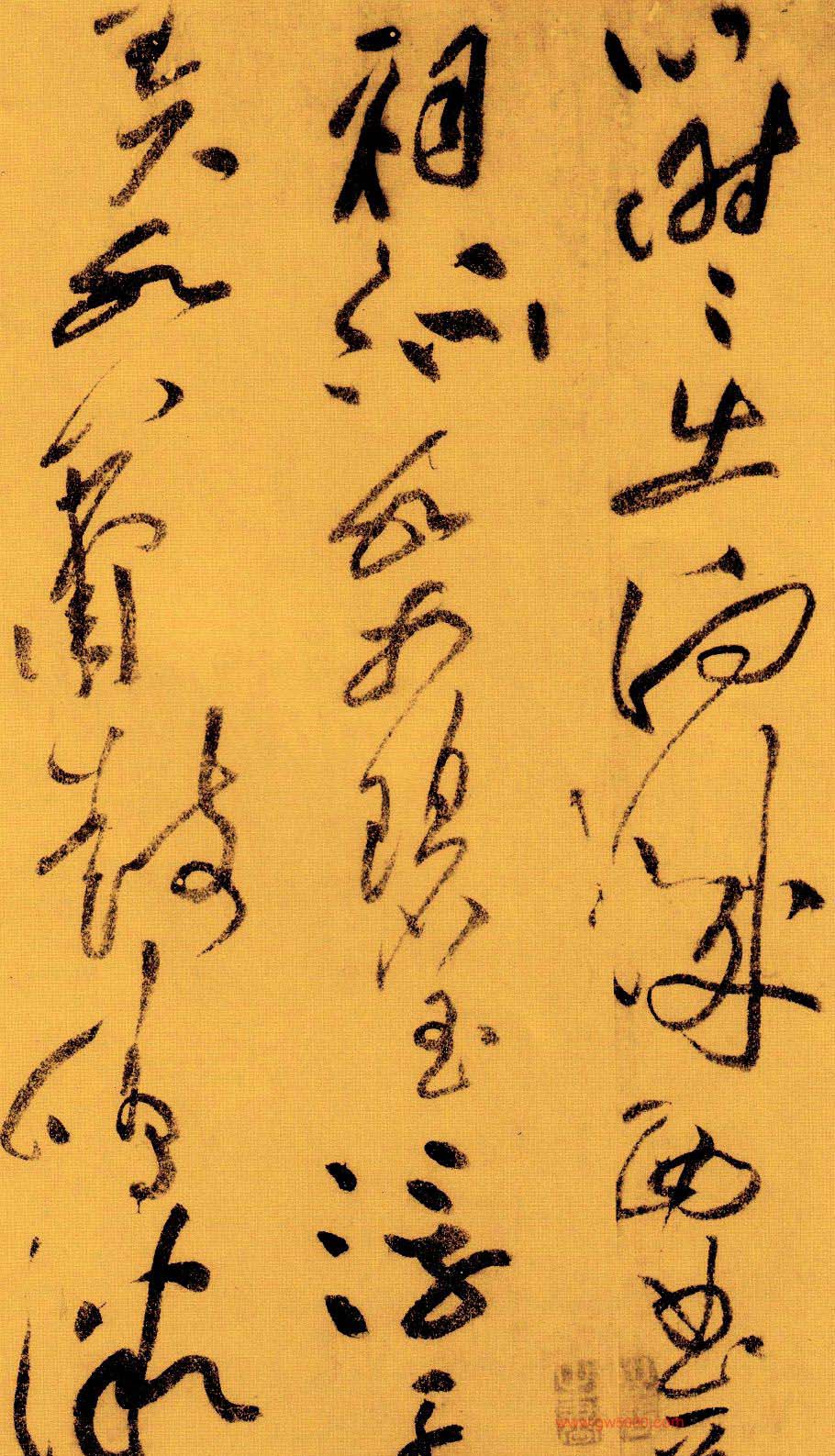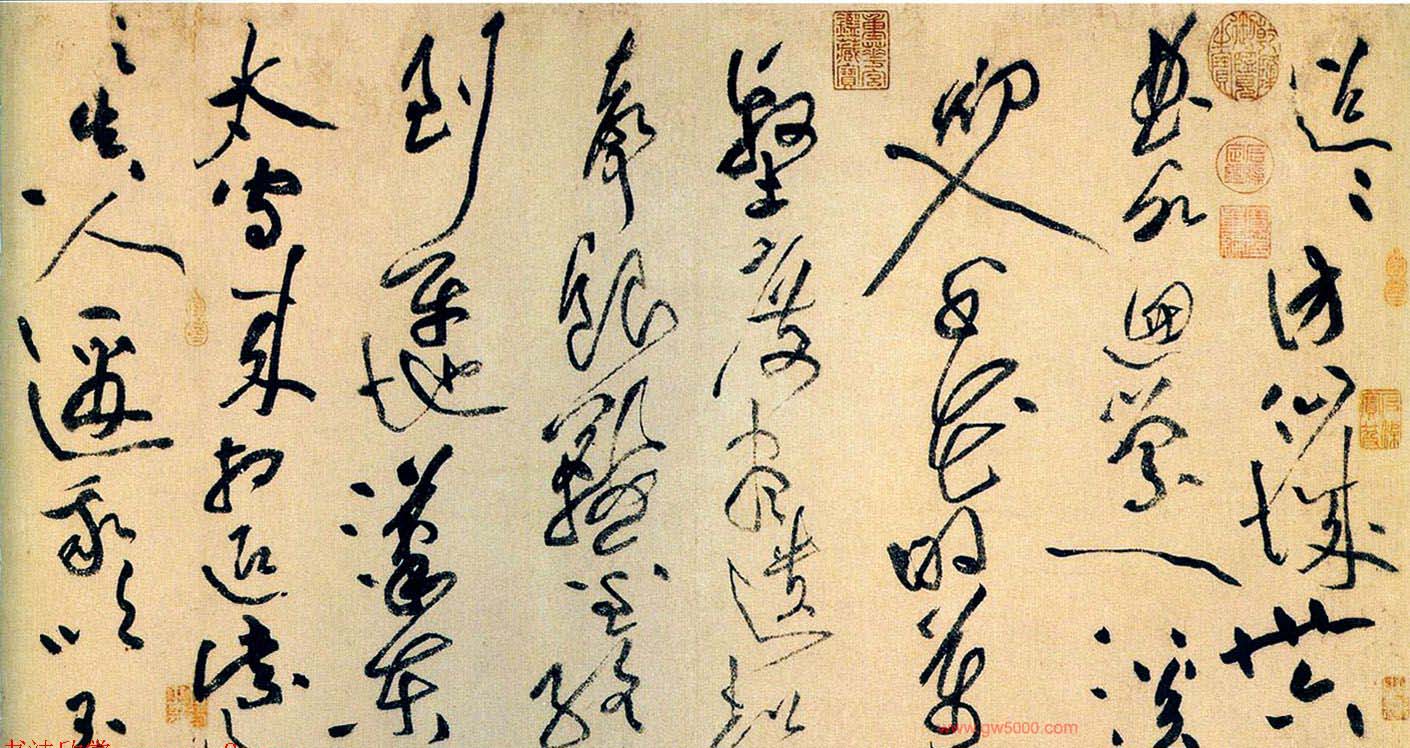 黄庭坚草书长卷赏析《李白忆旧游·寄谯郡元参军诗卷》纸本,37×392.5cm,凡52行,346字。书于崇宇三年(1104年)左右。据明代书画家沈周考定此卷为黄庭坚在绍圣年间(公元1094-1098年)被贬黔中后所书,是他晚年的草书代表作。钤有“秘府珍玩”、“机暇珍赏”、“北燕张氏珍藏”、“容斋清玩”等印记。乾隆时入内府,后被溥仪售出,流入日本。《珊瑚网》、《书画记》、《式古堂书画汇考》、《石渠宝笈续编》等著录。清道光间曾据摹本刻石,有单拓本传世。现藏日本京都藤井有邻馆。