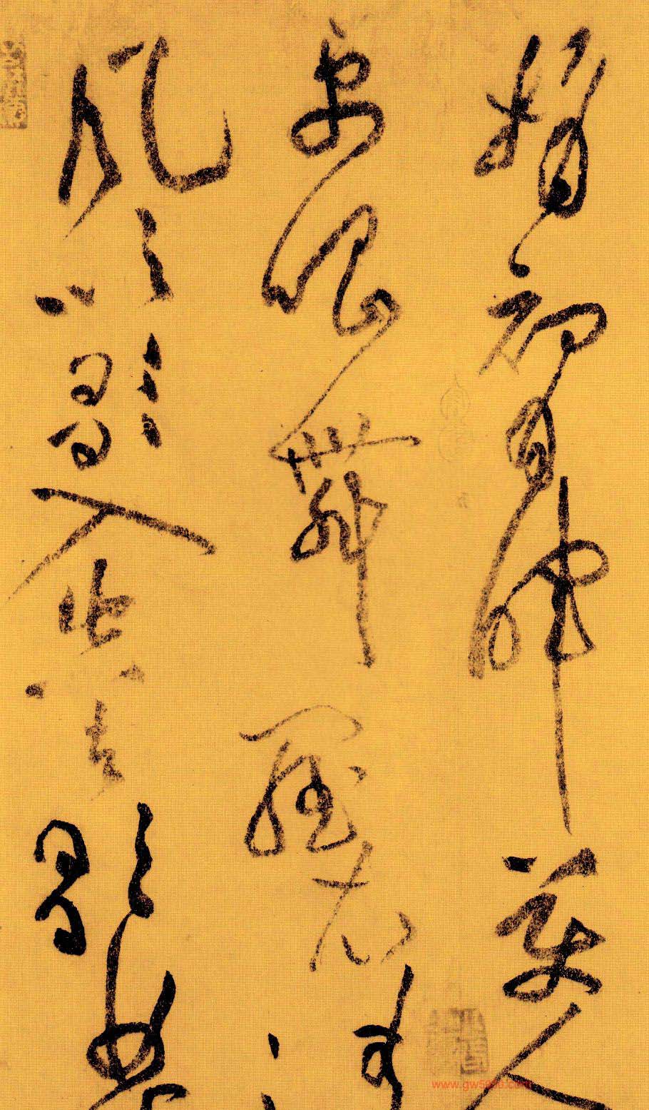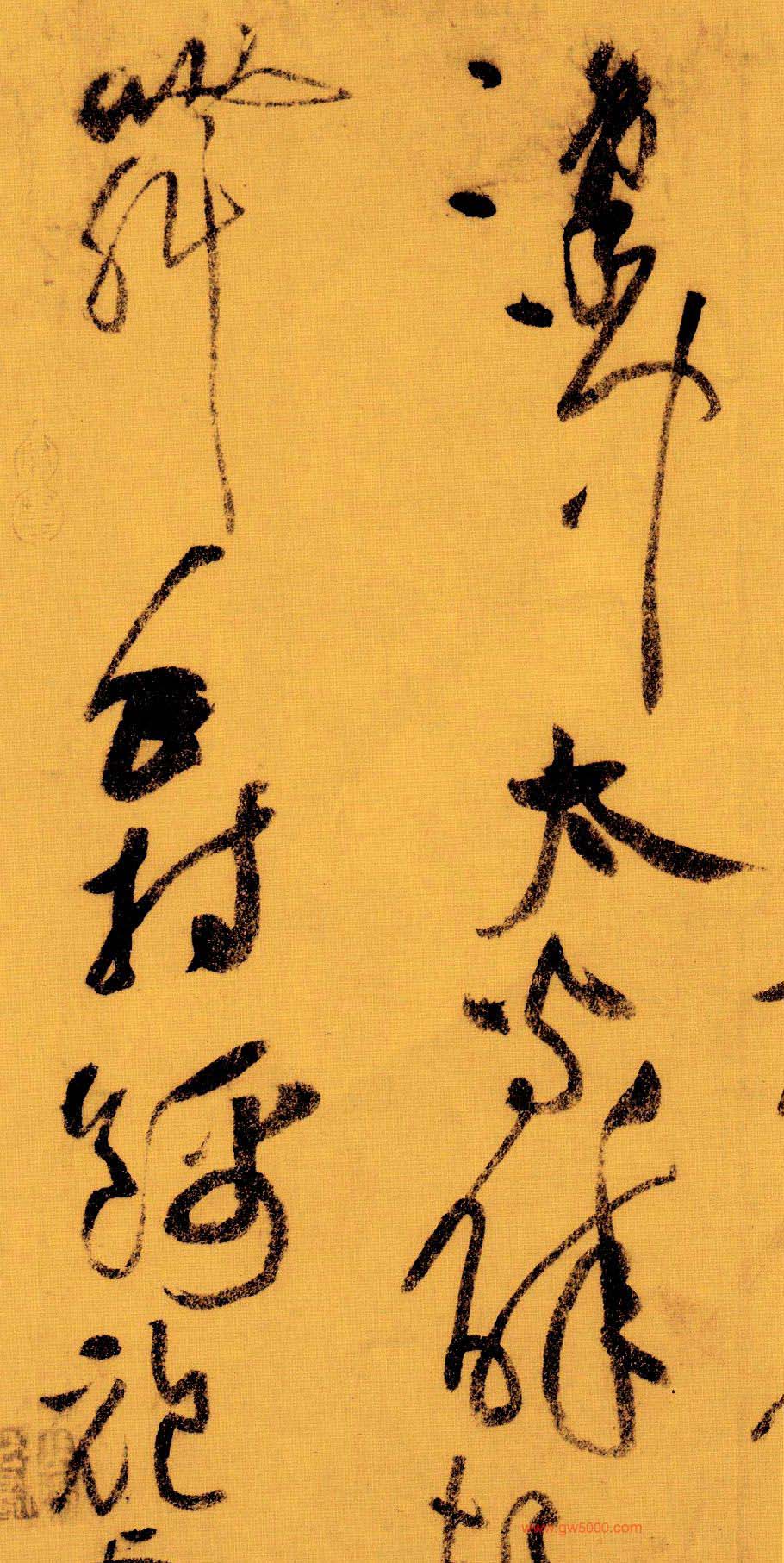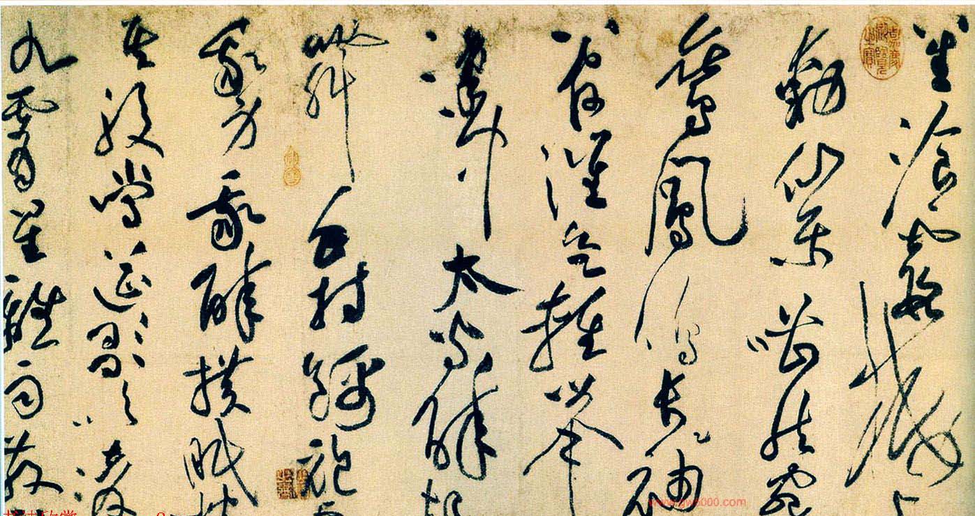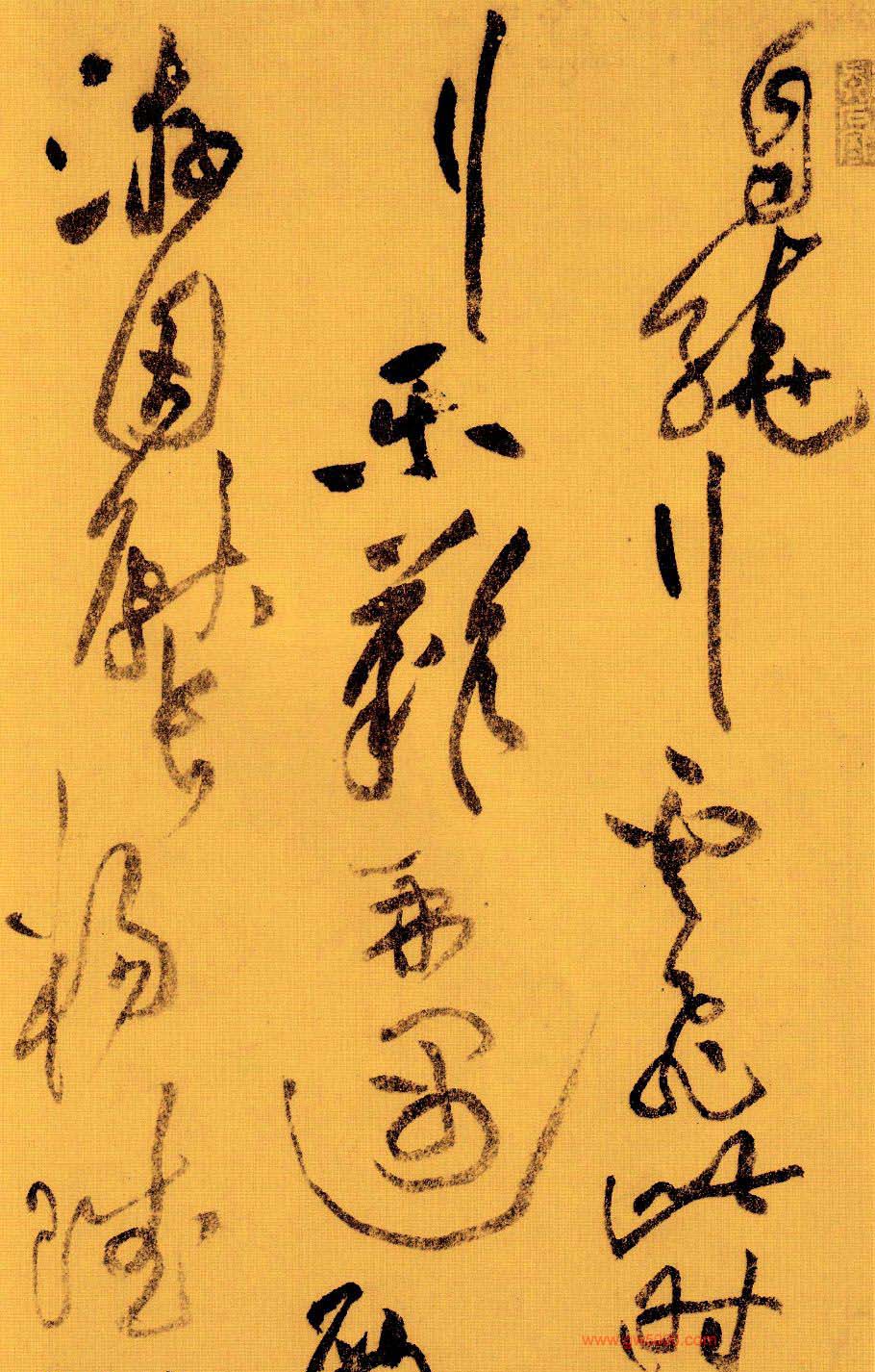黄庭坚草书长卷赏析《李白忆旧游·寄谯郡元参军诗卷》纸本,37×392.5cm,凡52行,346字。书于崇宇三年(1104年)左右。据明代书画家沈周考定此卷为黄庭坚在绍圣年间(公元1094-1098年)被贬黔中后所书,是他晚年的草书代表作。钤有“秘府珍玩”、“机暇珍赏”、“北燕张氏珍藏”、“容斋清玩”等印记。乾隆时入内府,后被溥仪售出,流入日本。《珊瑚网》、《书画记》、《式古堂书画汇考》、《石渠宝笈续编》等著录。清道光间曾据摹本刻石,有单拓本传世。现藏日本京都藤井有邻馆。