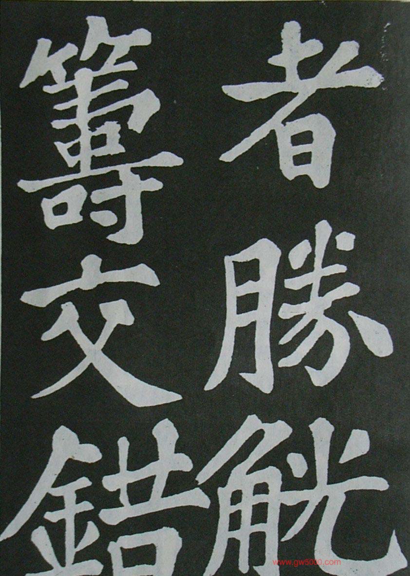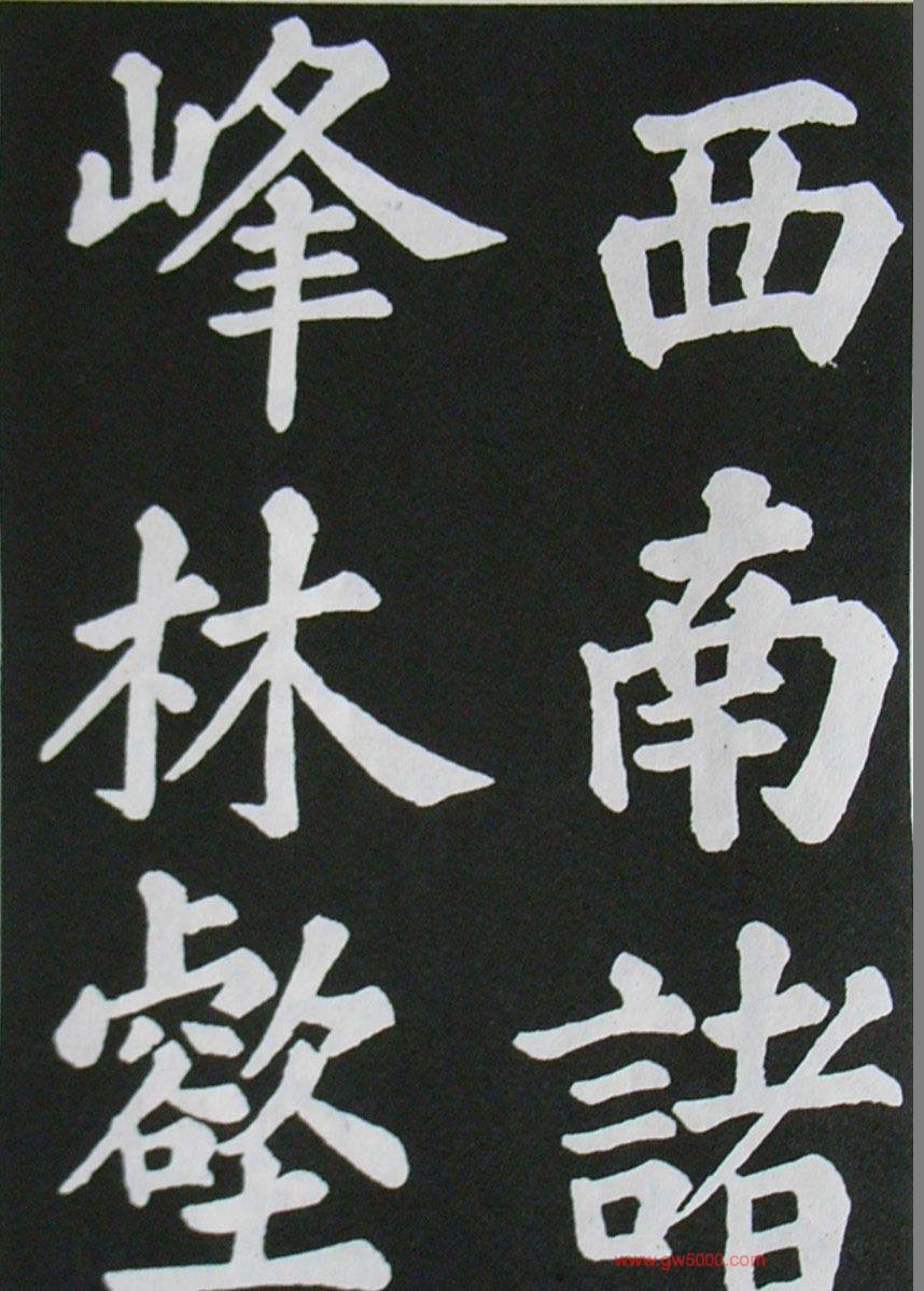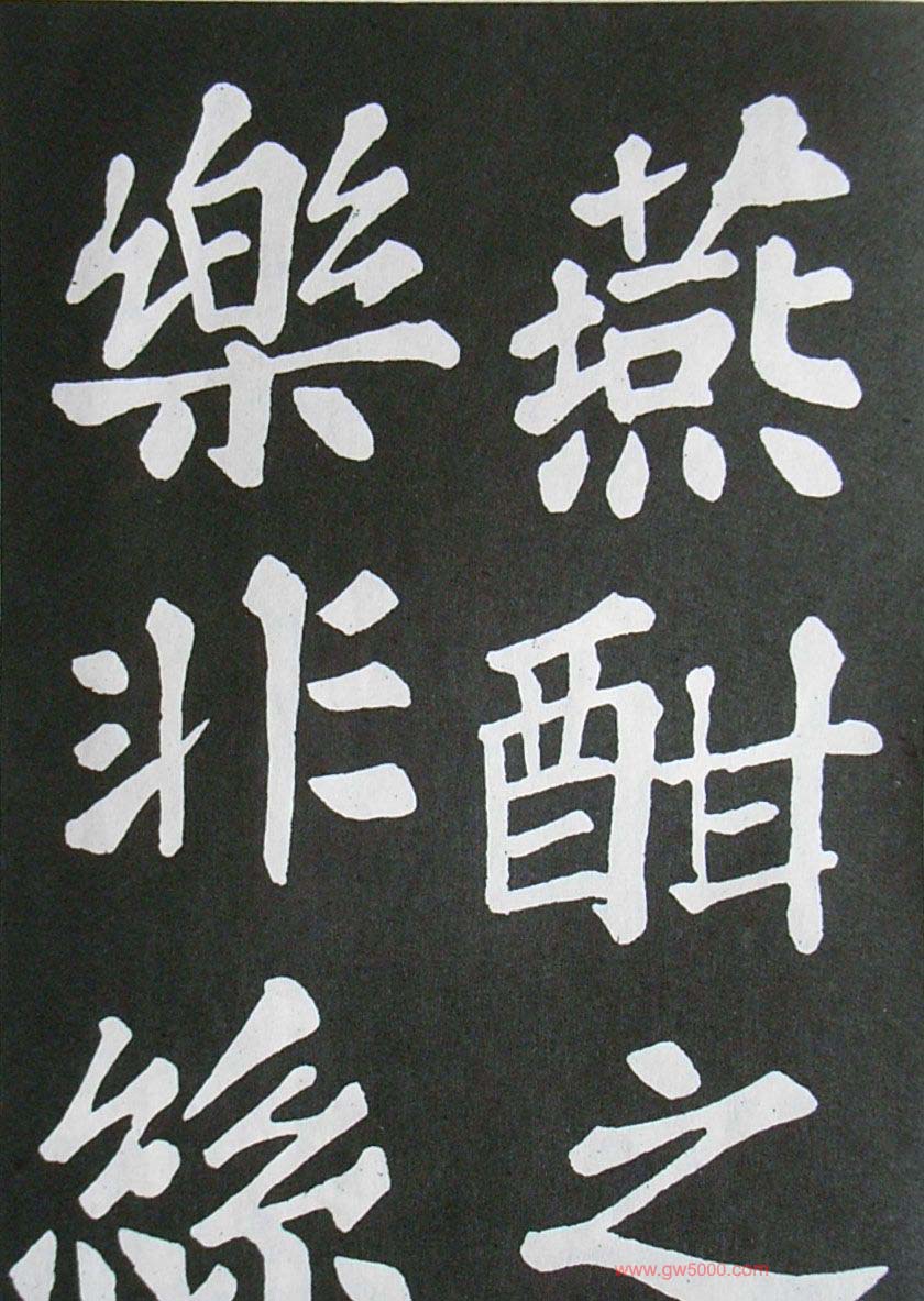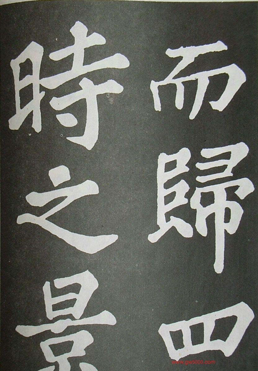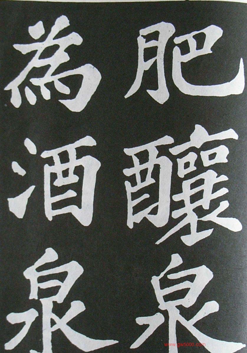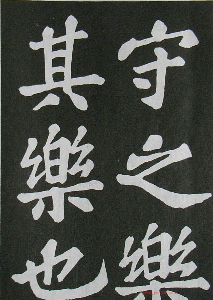 《醉翁亭记》,欧阳修撰,苏轼书。宋元祐六年(1091)十一月刻石,在安徽省全椒县。原石宋时已毁,明嘉靖间重刻石。宋刻本字有漫漶,但书体远在明刻本之上。今拓明刻本分四张拓,前三张七行,末张五行,行二十字。此碑书于欧阳修逝世后近二十年,无一笔松懈,无一字不缜密。在笔画的披拂之间既得其遭劲,又显示洒脱之美,其捺与撇往往十分舒展,如举手投足之自如萧散。笔笔用力,沉着宽厚,显出雄强;而又巧寓对比,错综变化,显示灵逸。比如“醉”字的“酉”旁共有四竖画,先用一分,继用二分,最末用三分笔。“提携”两字均为左右结构,又上下相联,苏武却将下一“携”字改为上下结构,使“扌”旁置于“乃”字上。赵孟頫《松雪斋》云:“余观此帖潇洒纵横,虽肥而无墨猪之状,外柔内刚,真所谓绵里裹铁也。”王世贞评:“苏书《醉翁亭记》,结法遒美,气韵生动,极有旭素屋漏痕意。”李长善认为:“文忠早师颜鲁公,大书《醉翁亭》、《袁州学记》,不改鲁公家法。”可谓知言。