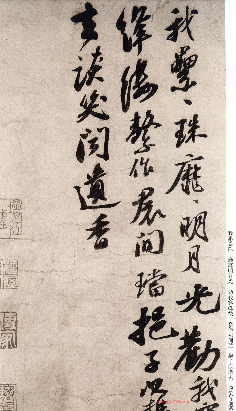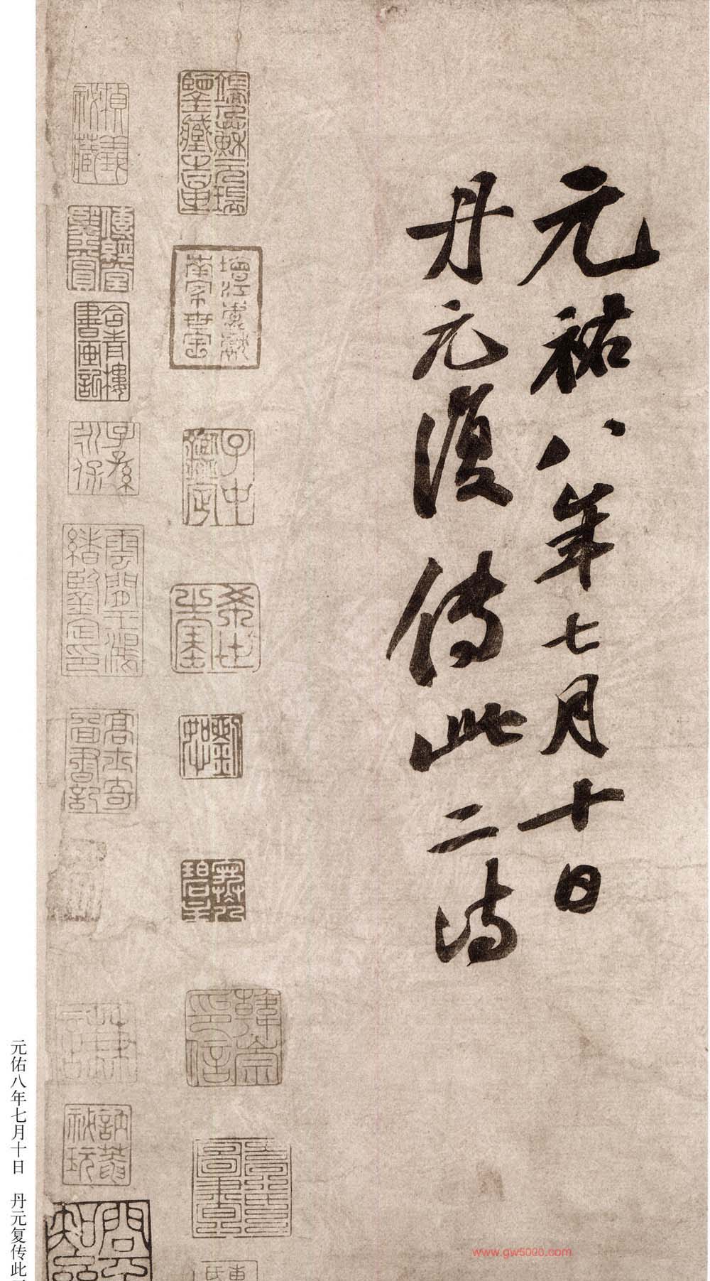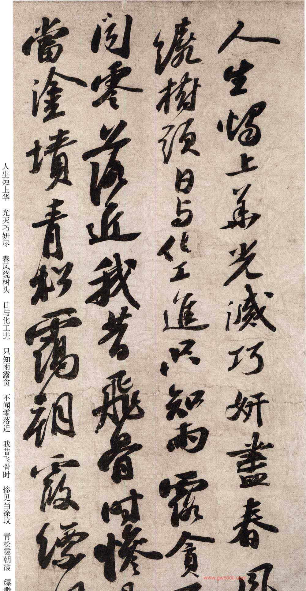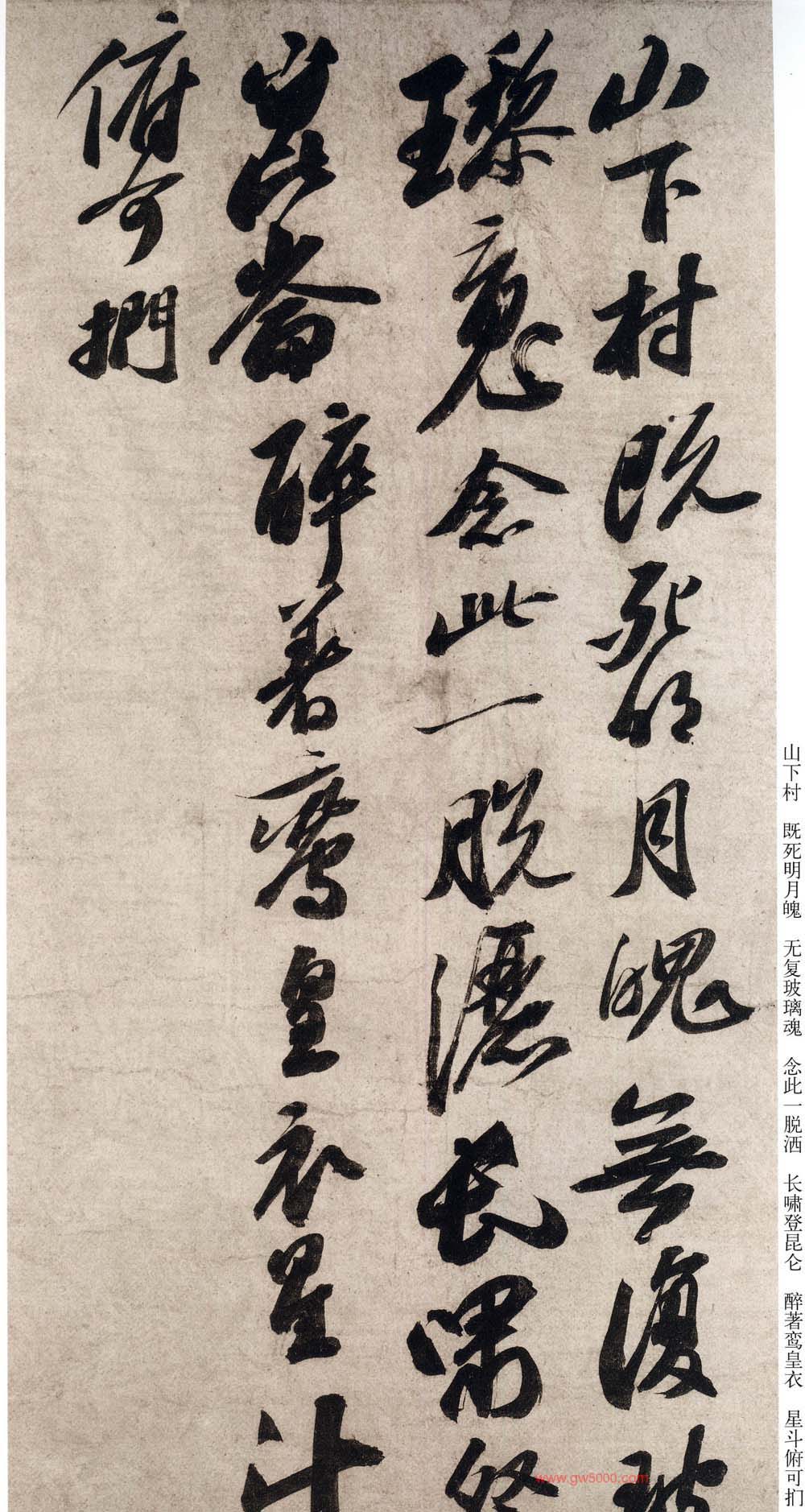 该帖为苏轼58岁时书。清高士奇《江村销夏录》著录。后有蔡松年、施宜生、刘沂、高衍及张弼、高士奇、沈德潜等明、清人跋。此帖已流入日本。施宜生谓“颂太白此语。则人间无诗,观东坡此笔则人间无字。”此两诗为逸诗《李太白文集》所不载。太白之诗共两首。第一首娓娓道来,仙气拂拂,引人入胜。第二首凄清空逸超脱人寰。书则第一首灵秀清妍,姿致翩翩,后十句渐入奇境,变化多端,神妙莫测。第二首驰骋纵逸,纯以神行人书合一,仙气飘渺,心随书走,非复人间之世矣。此书境界,颇难企及。