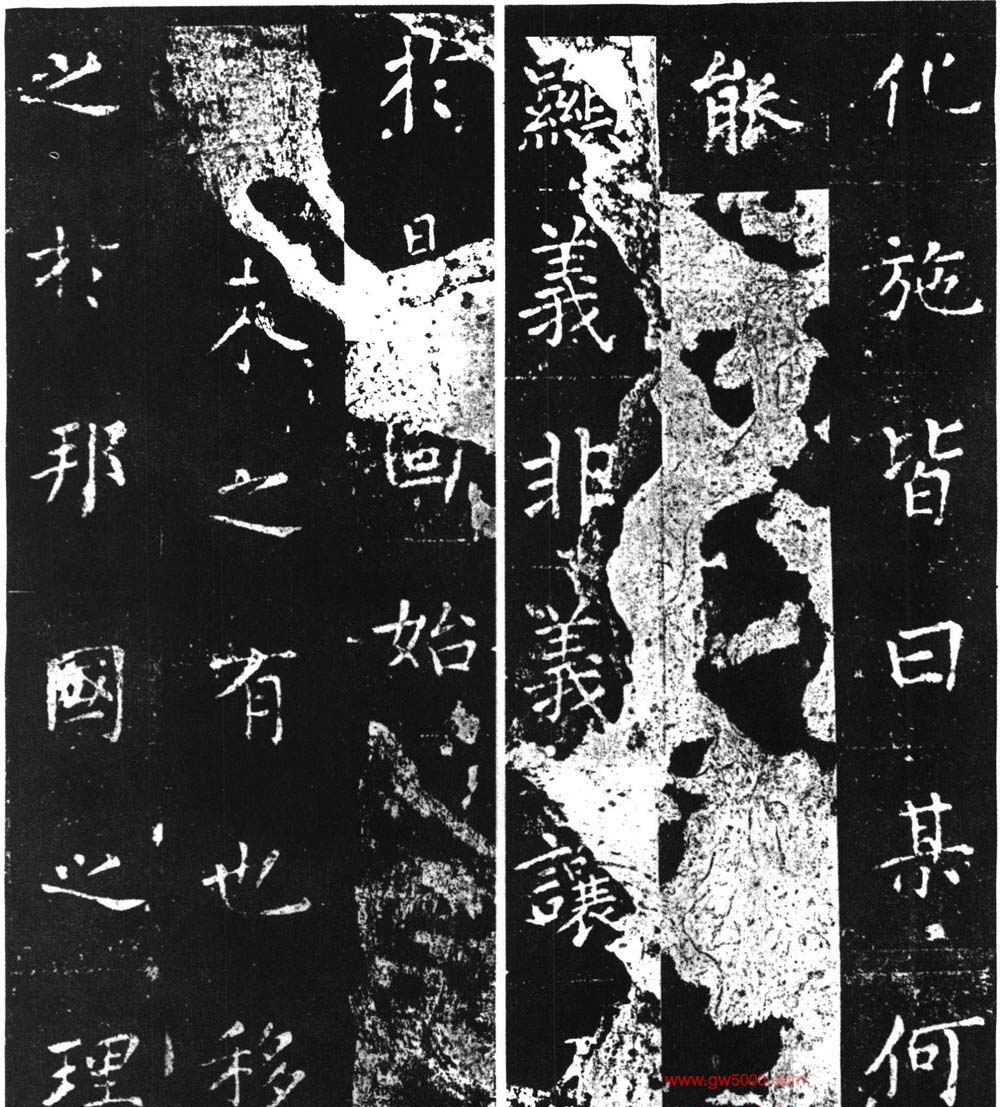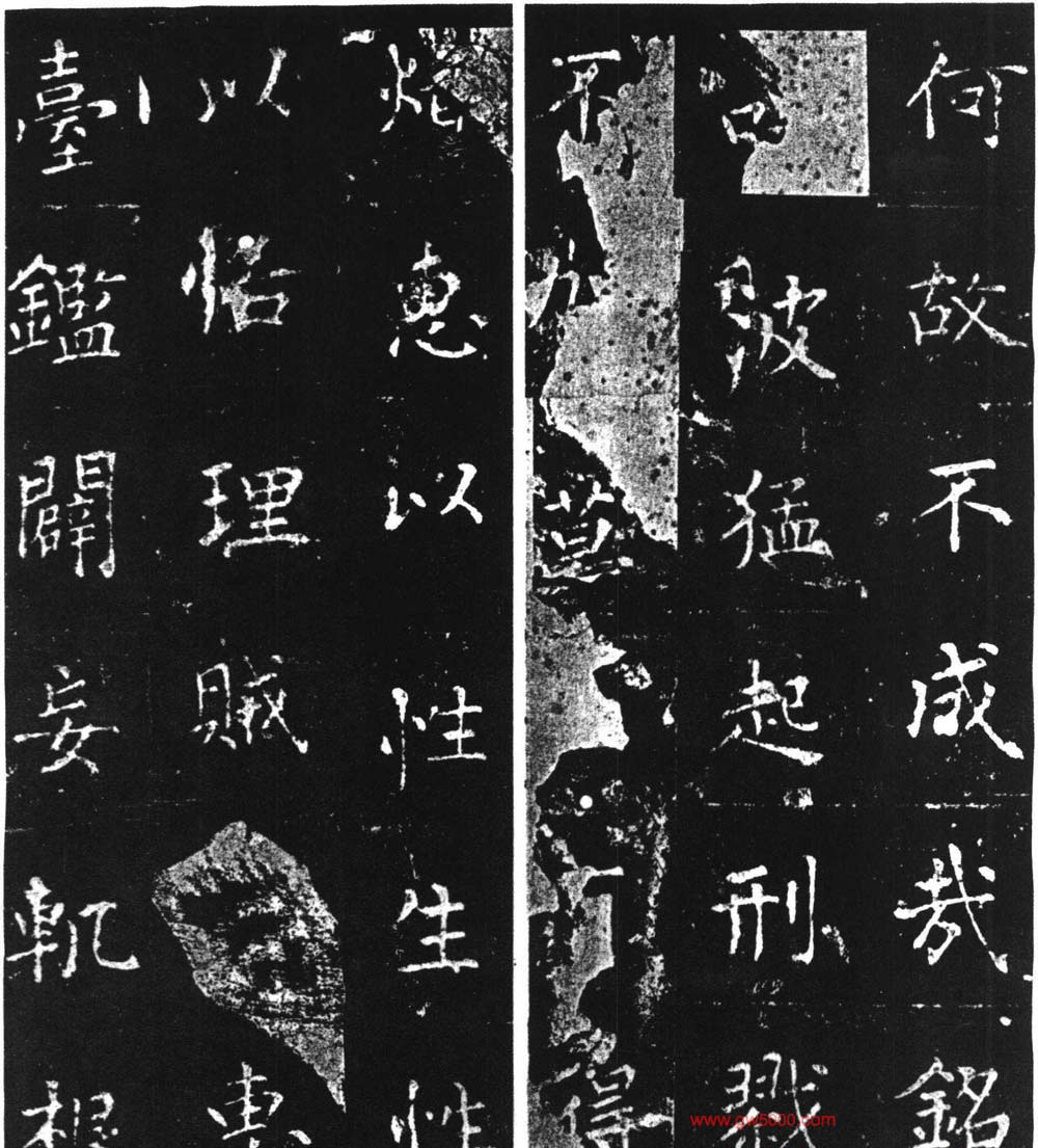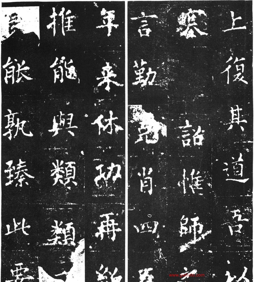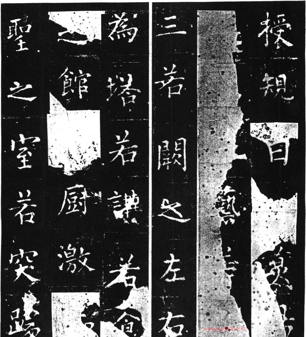 此碑宋时就因遭火而剥落,清代断裂,元朝有摹刻本。此碑虽是柳骨挺拔,但风棱已由外射转入内蕴。随着年岁的增长,斩钉截铁外露的锋芒也相应减少。此碑字间空白颇多,一种心灵之光仿佛荡漾在字里行间。