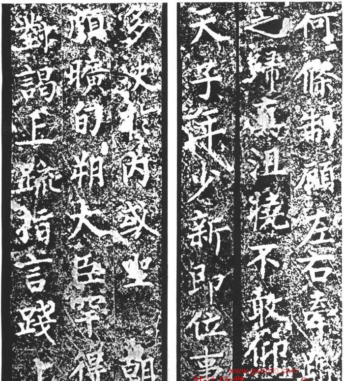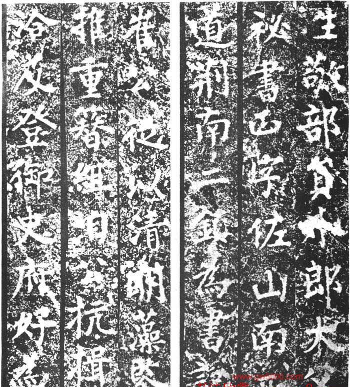 柳公权楷书《高元裕碑》为柳公权(853年,七十六岁)书,萧邺撰文,在河南洛阳,碑高一丈一尺余,广四尺,楷书三十三行,行七十九字。额篆书“大唐故吏部尚书赠尚书右仆射渤海高公神道碑”,四行,二十字。康有为曰:“《高元裕碑》有龙跳虎卧之气。”(《广艺舟双揖》)清杨守敬《学书迩言》云:“《高元裕》一碑,尤为完美,自斯厥后,虽有作者,不能自辟门户矣。”“龙跳虎卧”是喻其书法之雄强有力。后者称其完美,已达炉火纯青之境界。
