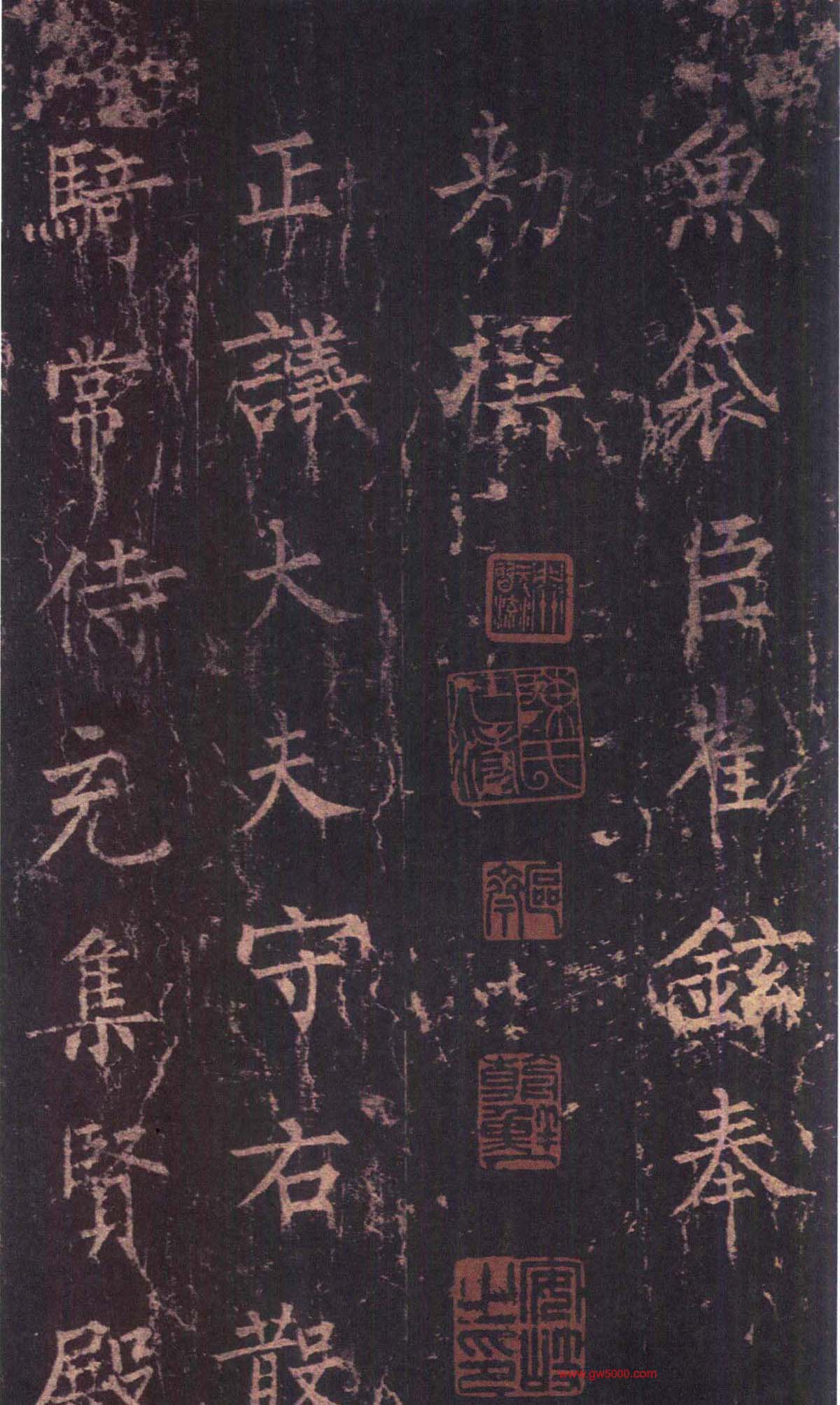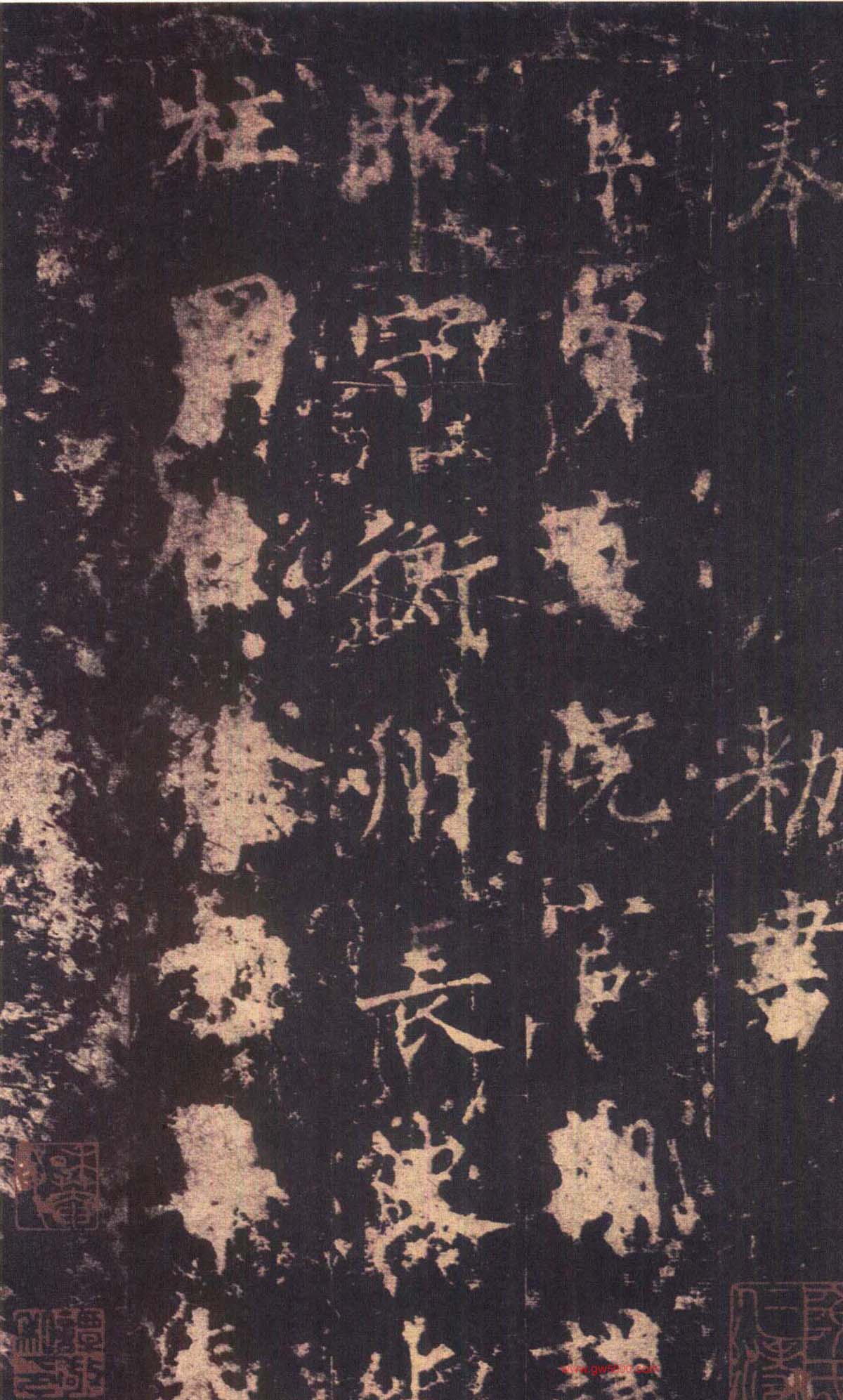 唐拓本已装裱成上下二册,下册早已失传,原石早已不见了。现在海内外仅存一册宋代的拓本,世称宋拓孤本。有南宋贾似道、元瀚林国史院、明晋王朱钢等藏印。清代经孙承泽、安岐等人递藏。此碑拓曾一度流于香港,1965年,周恩来总理特批,以重金购回,入藏北京国家图书馆,因其罕见的文物价值和艺术价值,被国家图书馆尊为镇馆之宝。